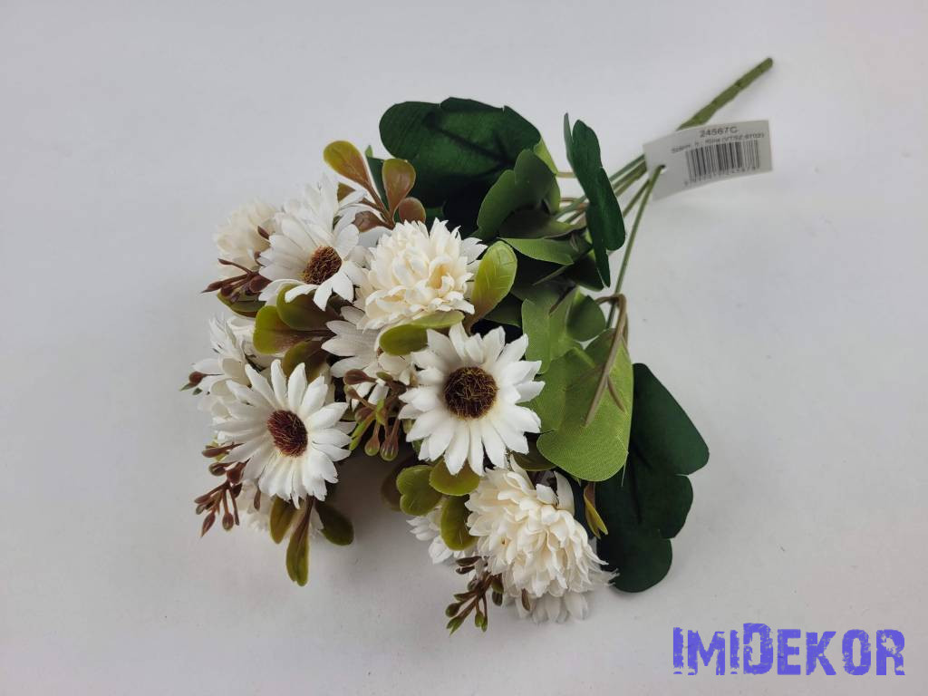 Krizantém - Margaréta 5 ágú selyem csokor 30cm - Krém