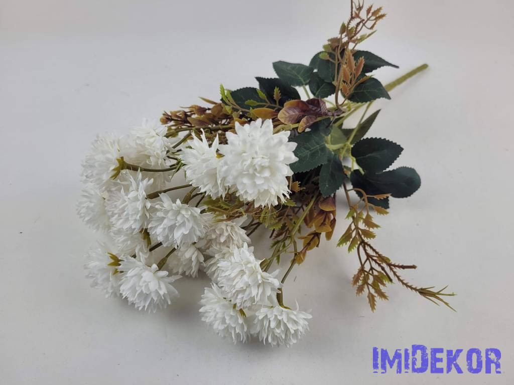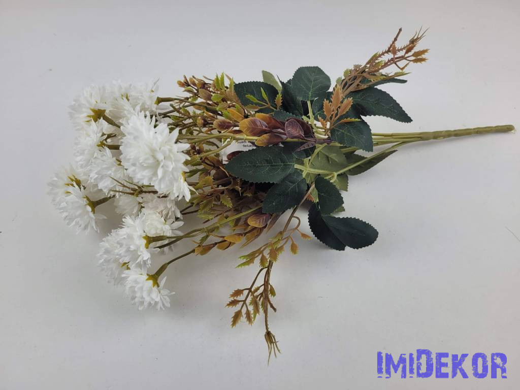 Krizantém mini fejes 7 ágú selyemvirág csokor 40cm - Fehér