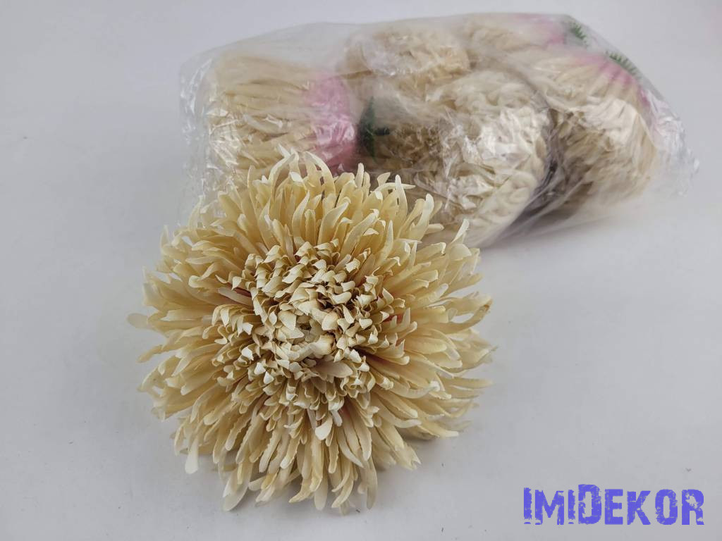 Krizantém selyemvirág fej D17cm - Rózsaszínes Barack
