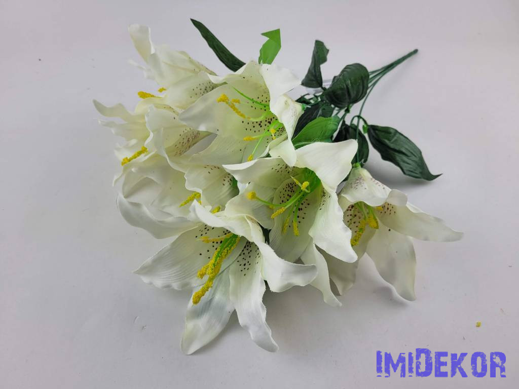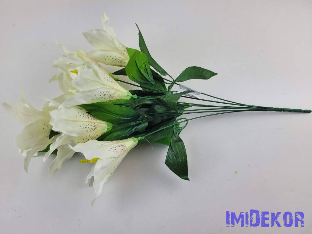 Liliom 7 fejes selyemvirág csokor 49cm - Törtfehér