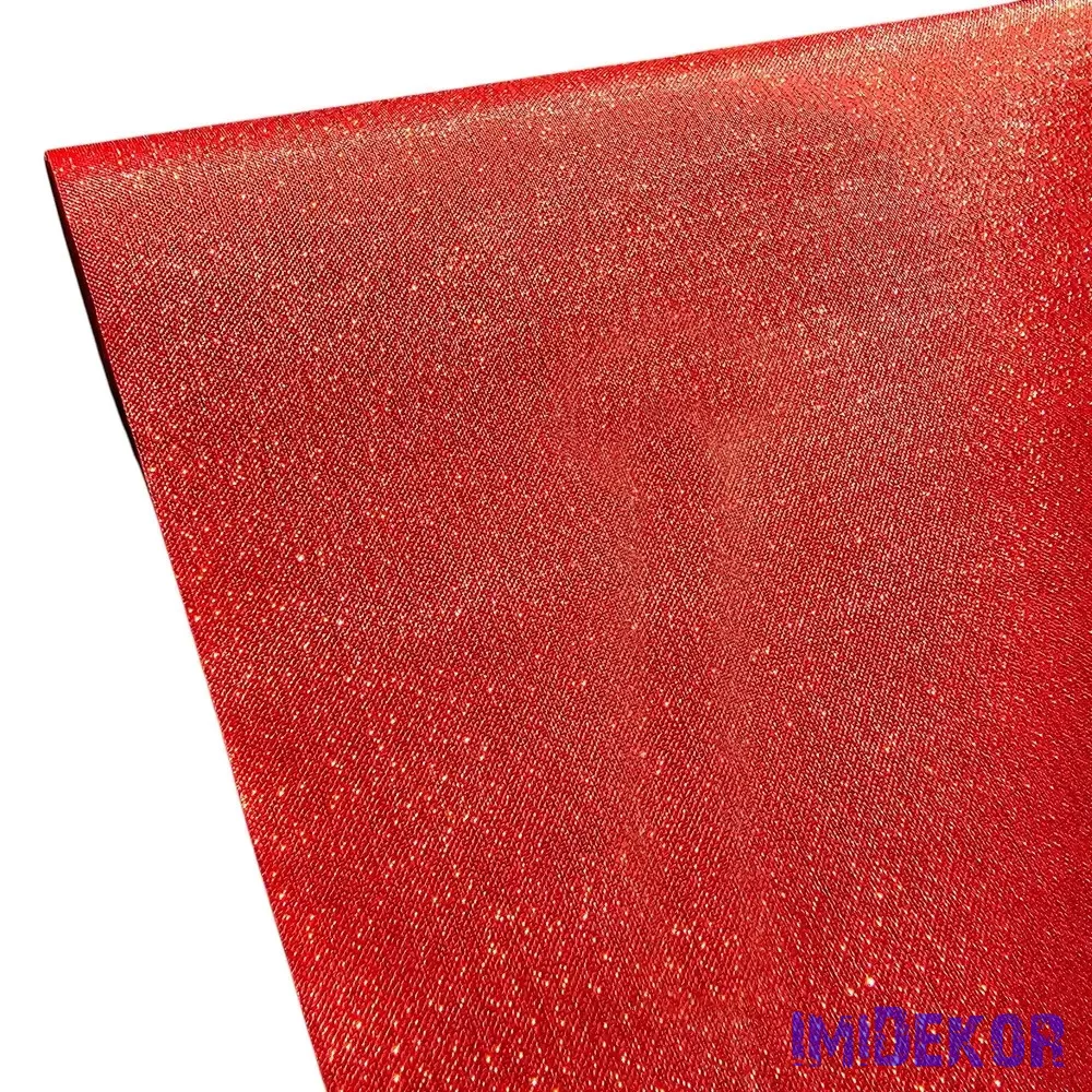 Metál vászon dekorációs anyag, asztali futó, 28cm x 5m - Piros