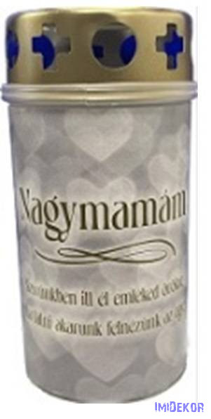 Műanyag fém fedeles mécses mintás 11,5x5,5cm - Nagymamám Szívünkben itt él emléked örökre