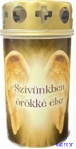 Műanyag fém fedeles mécses mintás 11,5x5,5cm - Szívünkben Örökké Élsz