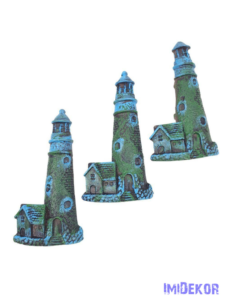 Nyári dekor - Világítótorony házikóval antik kb 9,5cm 3db/csomag