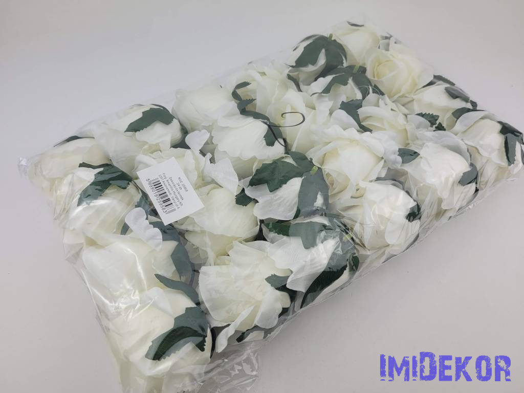 Nyíló rózsa selyem fej D7cm - Ekrü