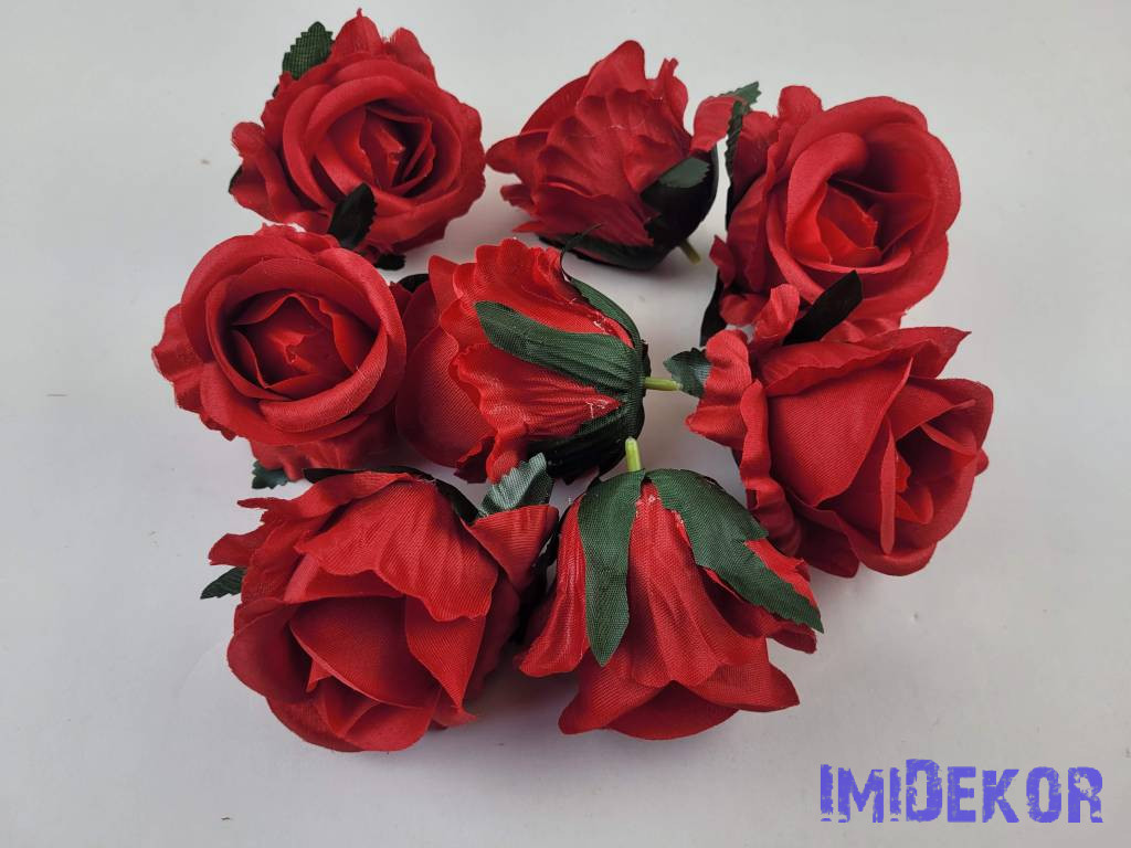 Nyíló rózsa selyem fej D7cm - Piros