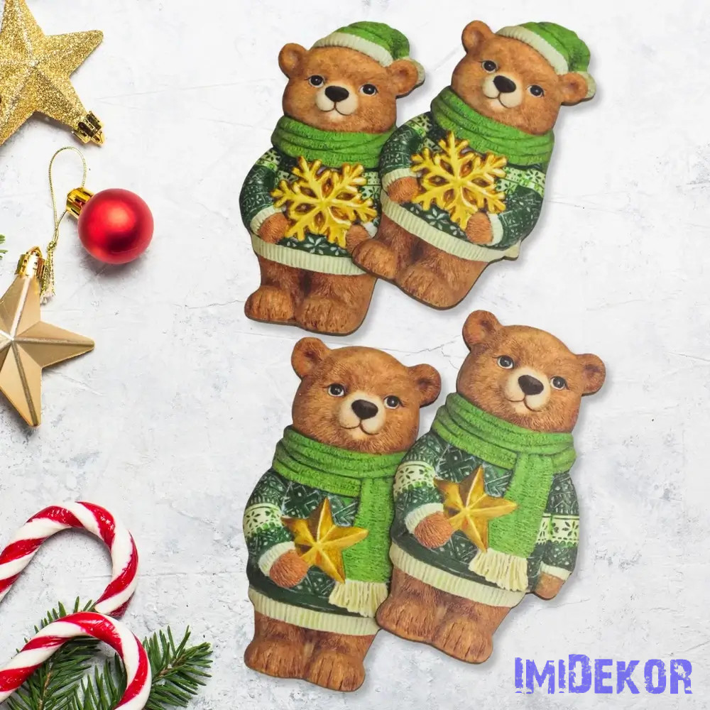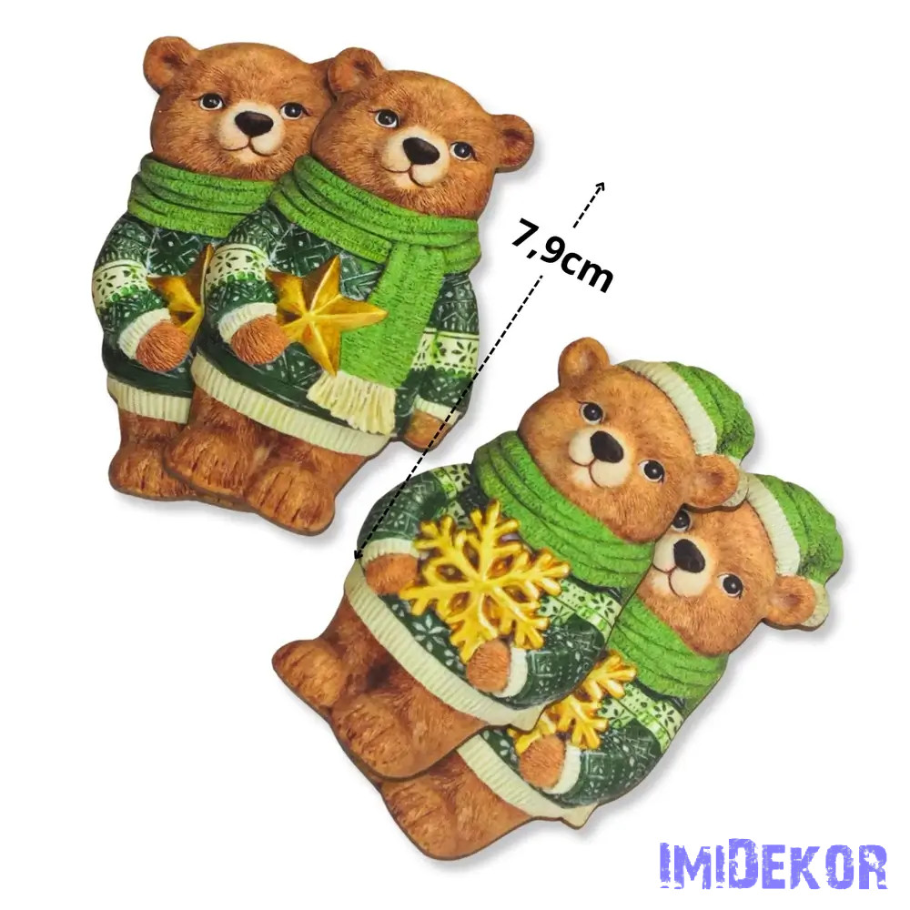 Nyomtatott dekorkarton - Karácsonyi zöld maci pár 4db/csomag