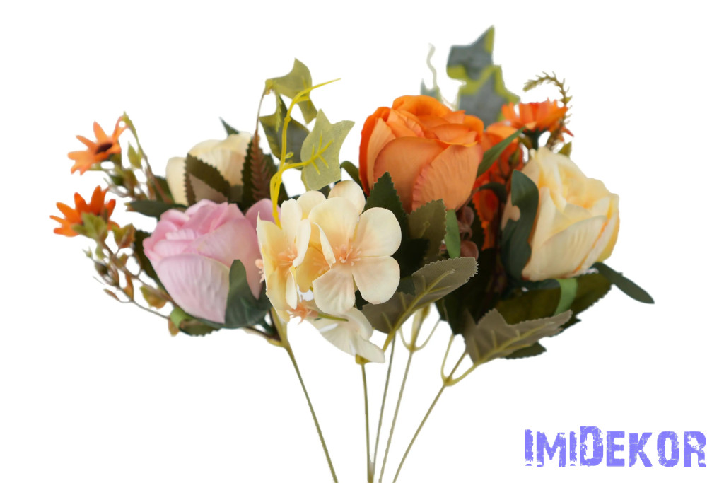 Peónia + hortenzia 6 ágú selyemvirág csokor 31cm - Mix