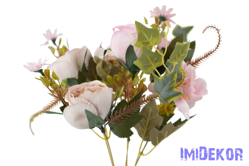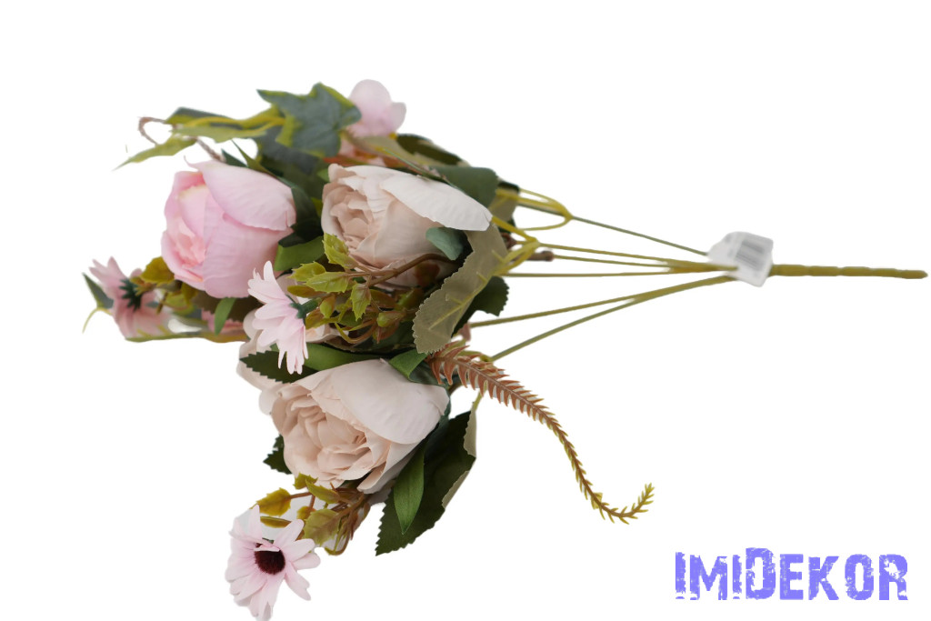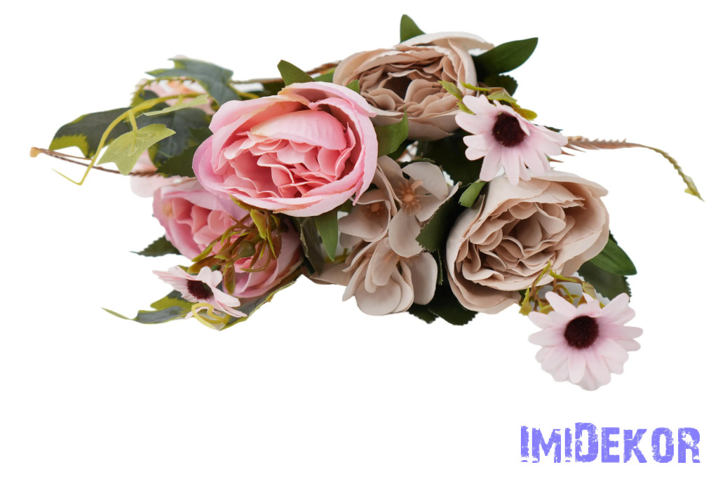 Peónia + hortenzia 6 ágú selyemvirág csokor 31cm - Púder-Rózsaszín