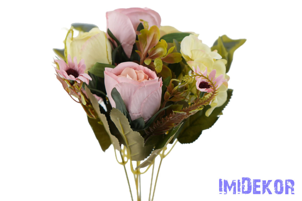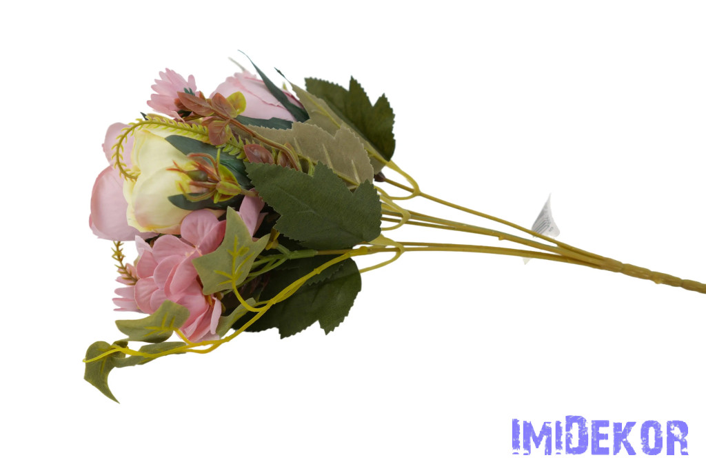Peónia + hortenzia 6 ágú selyemvirág csokor 31cm - Zöld-Rózsaszín