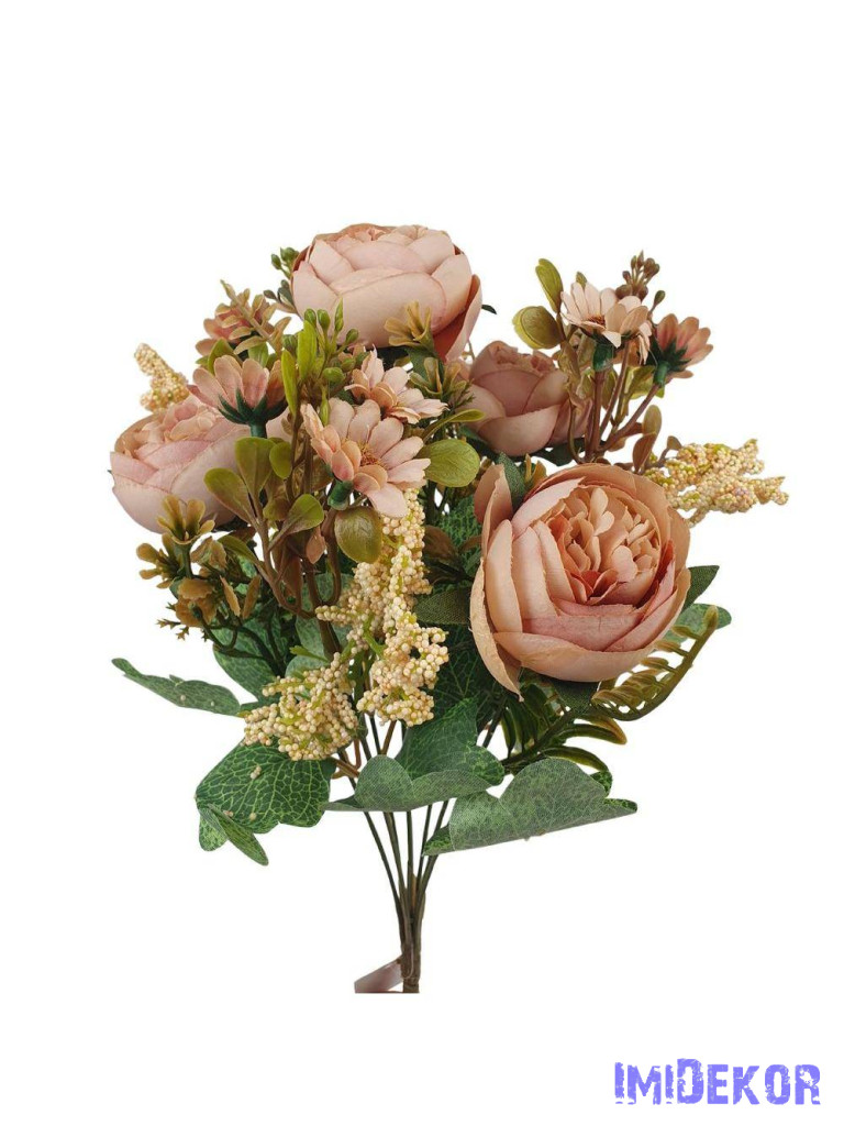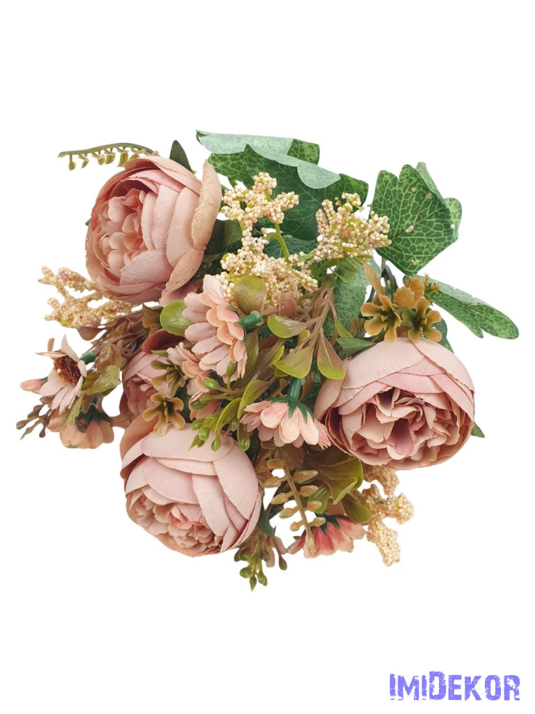 Peónia selyemvirág csokor kiegészítőkkel 35cm - Antik Barack