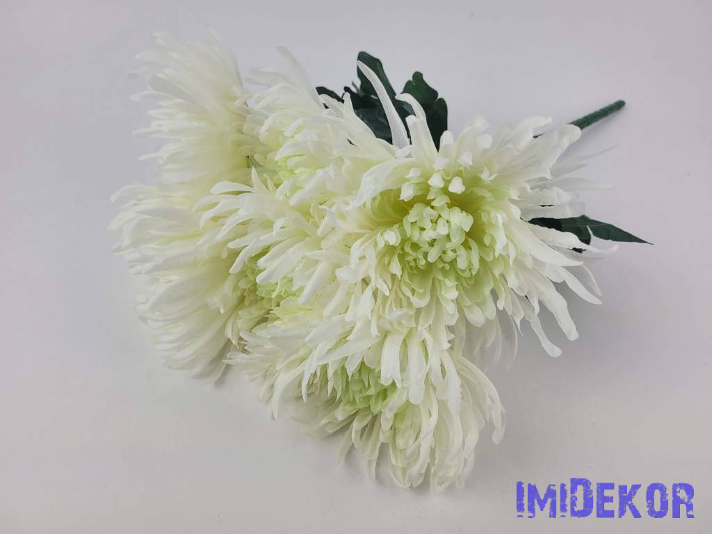 Pók krizantém 7 ágú selyem csokor 42cm - Zöldes Krém