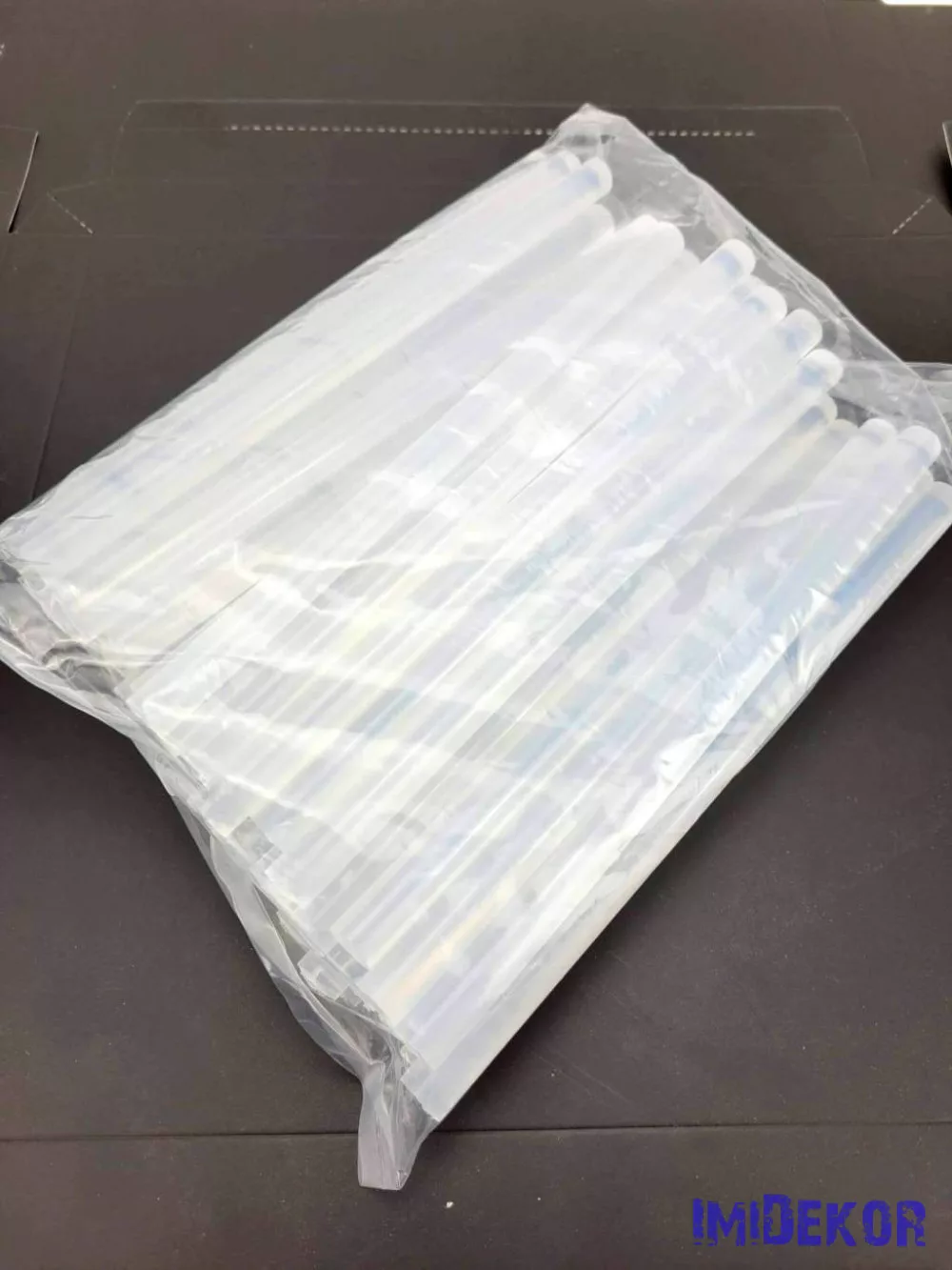 Standard méretű, 11mm átmérőjű ragasztópisztolyba való ragasztó betét. Hossza 20 cm, az ár 1kg-s csomagolásra, azaz kb 54 darabra vonatkozik, minimálisan rendelhető mennyiség 24csomag, azaz egy karton.
