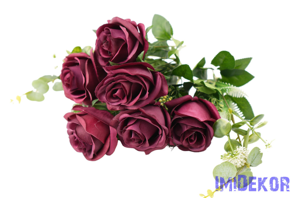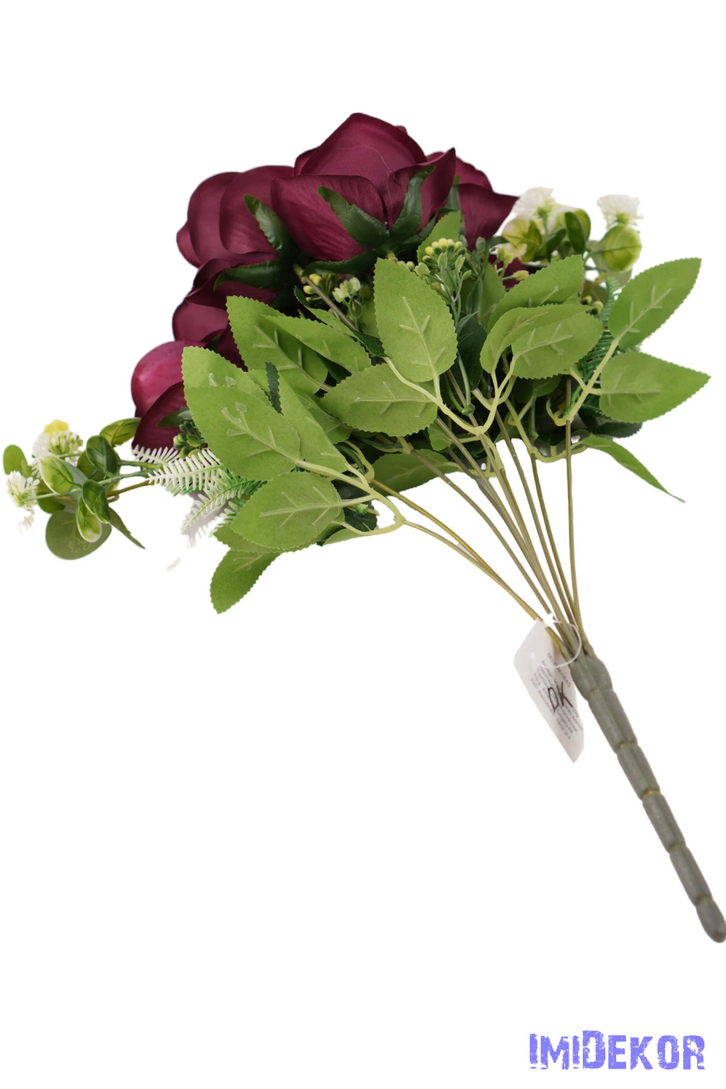 Rózsa 10 ágú selyemvirág csokor 47cm - Bordó