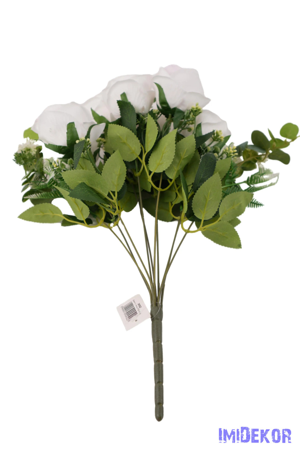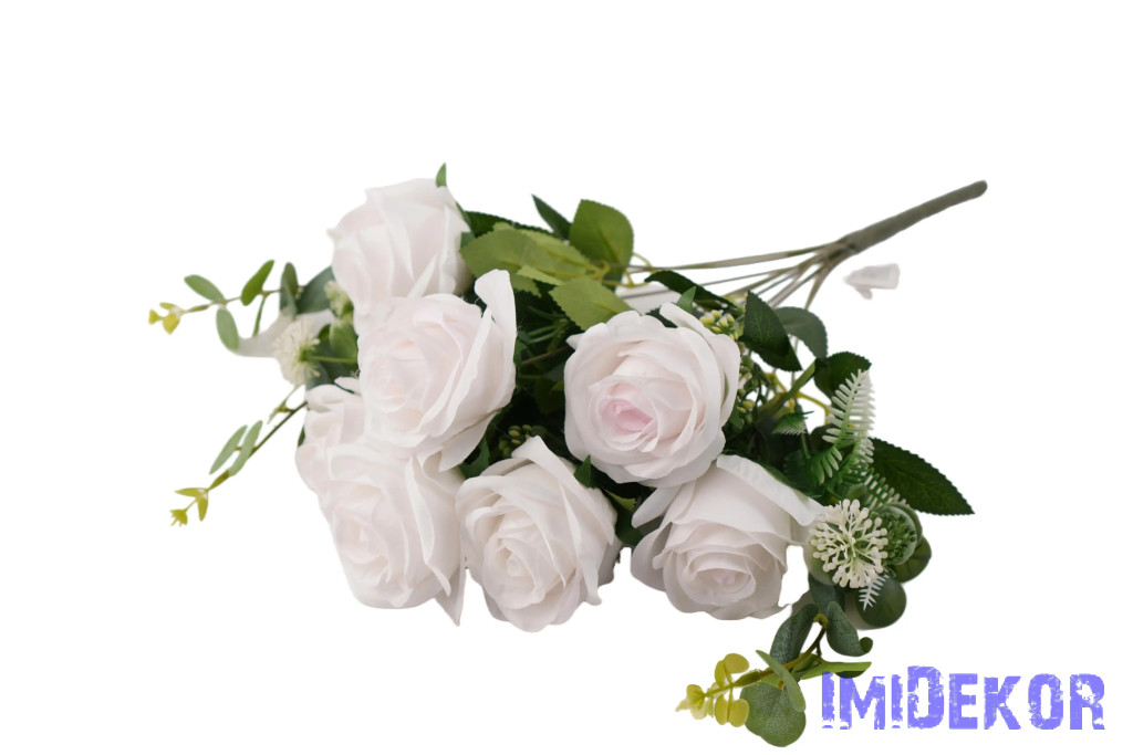 Rózsa 10 ágú selyemvirág csokor 47cm - Fehér-Fehér-Rózsaszín