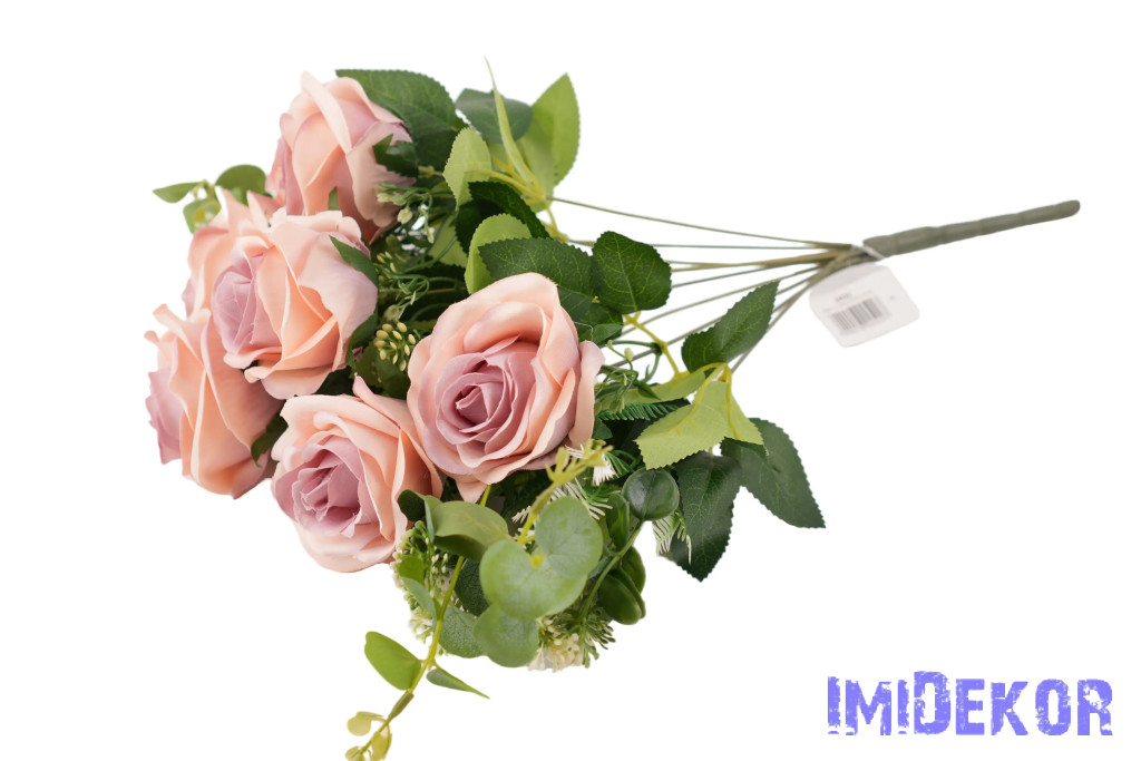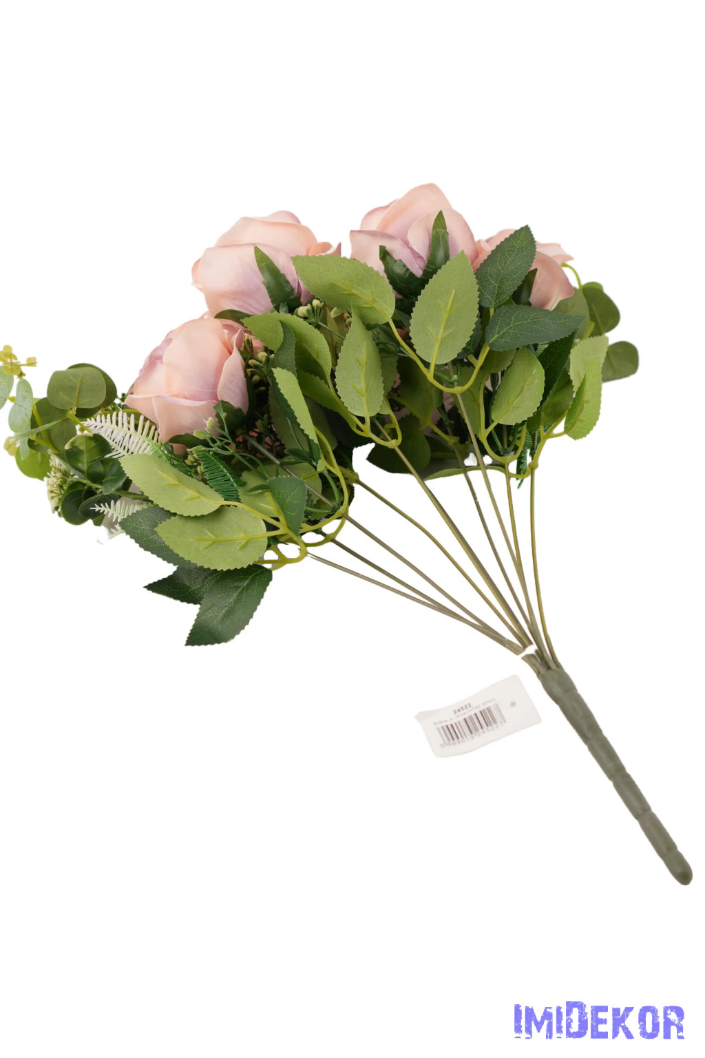 Rózsa 10 ágú selyemvirág csokor 47cm - Halvány Mályva
