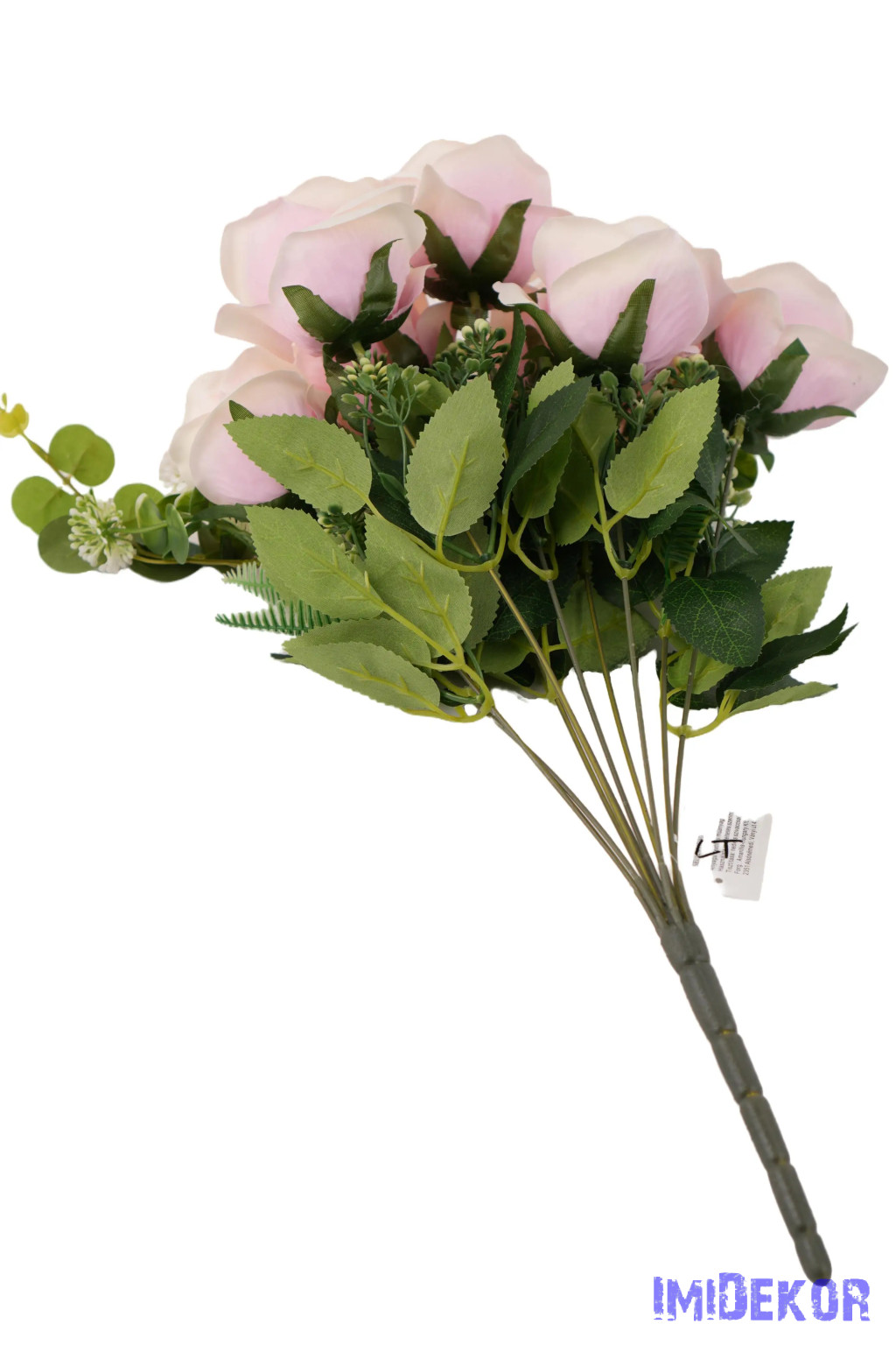 Rózsa 10 ágú selyemvirág csokor 47cm - Krém-Rózsaszín