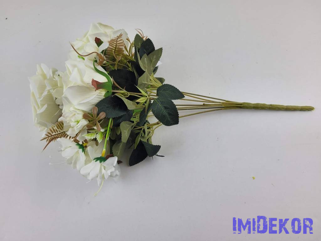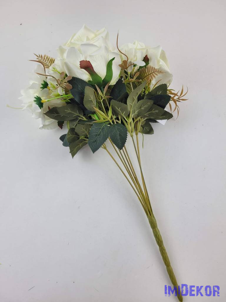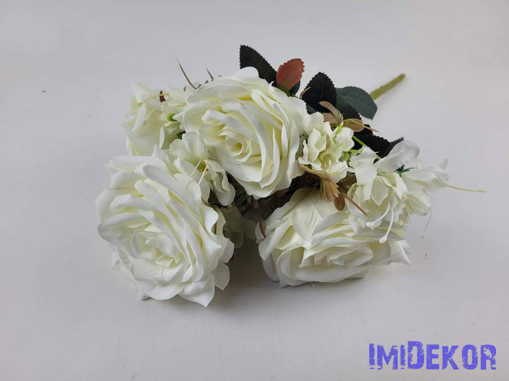 Rózsa 7 ágú selyemvirág csokor 43cm - Krém