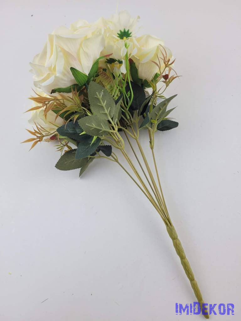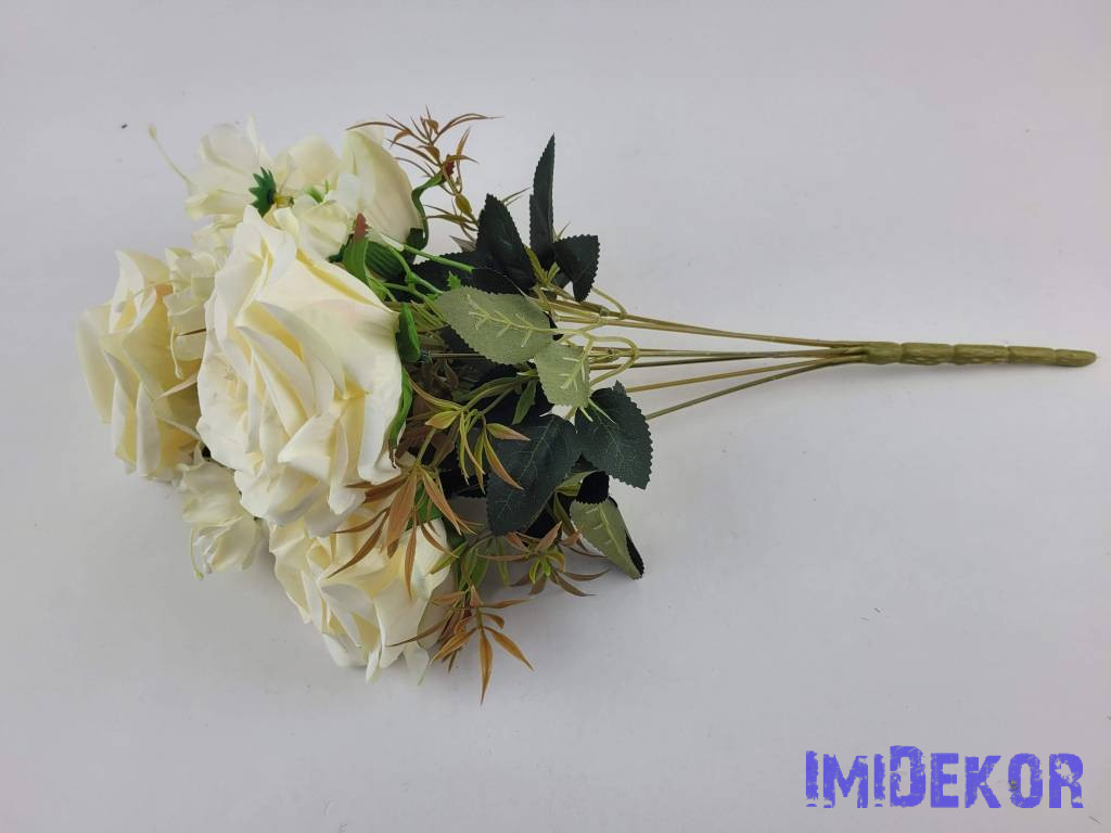 Rózsa 7 ágú selyemvirág csokor 43cm - Vaj