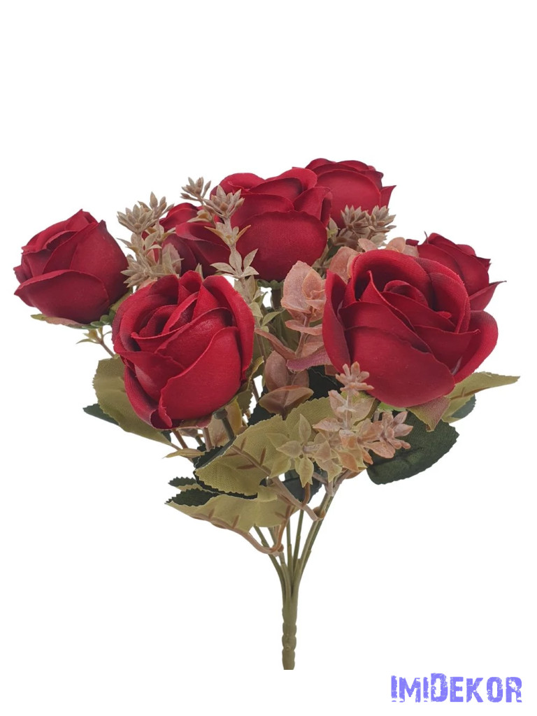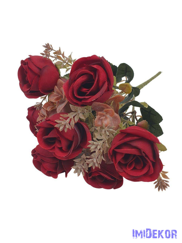 Rózsa 7 fejes selyemvirág csokor 30cm - Bordó