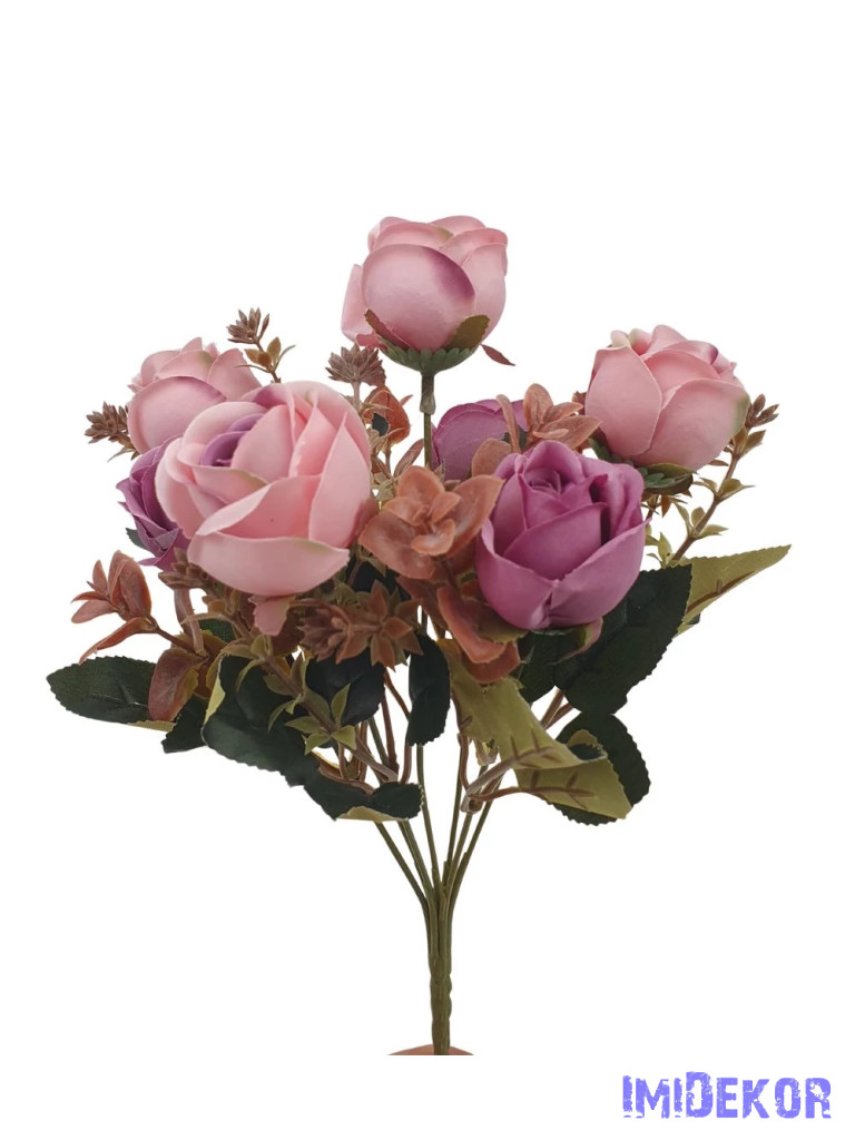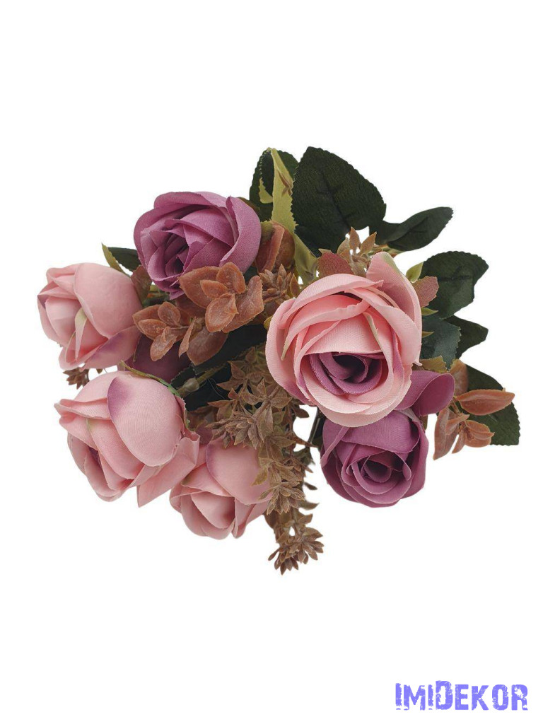 Rózsa 7 fejes selyemvirág csokor 30cm - Mályva
