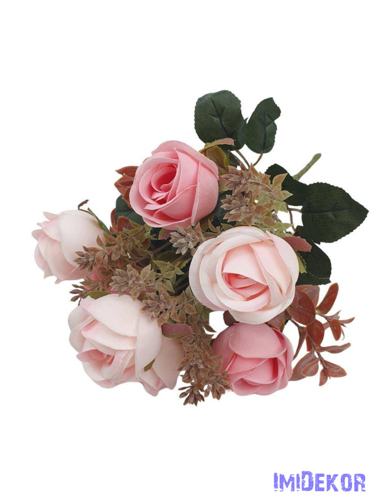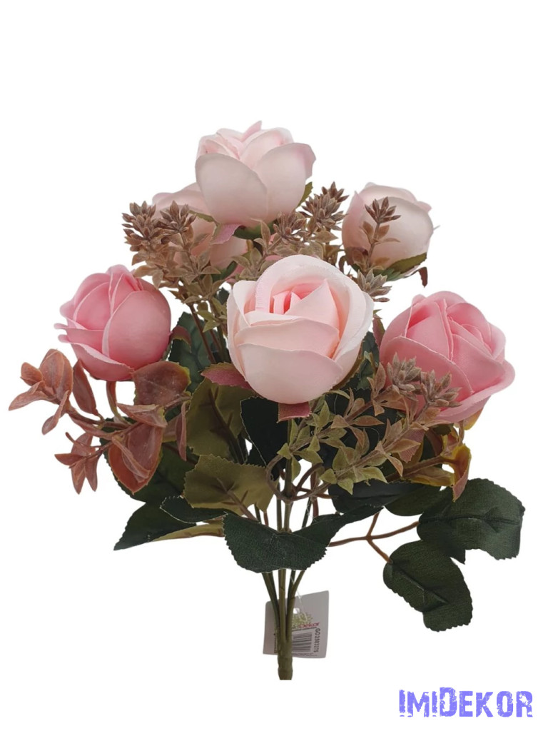 Rózsa 7 fejes selyemvirág csokor 30cm - Rózsaszín