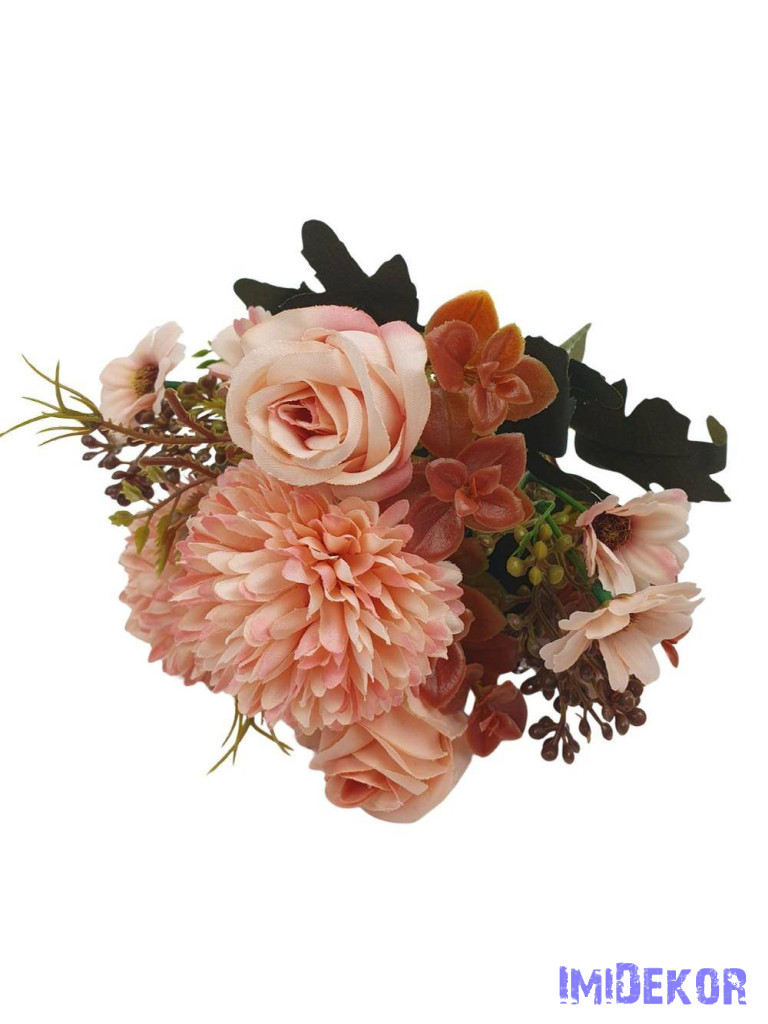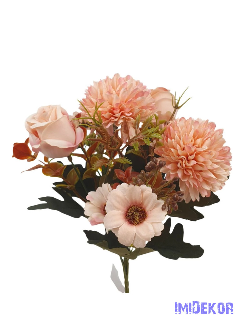 Rózsa-Krizantém vegyes selyemvirág csokor 31cm - Barack