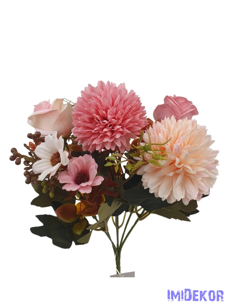 Rózsa-Krizantém vegyes selyemvirág csokor 31cm - Rózsaszín