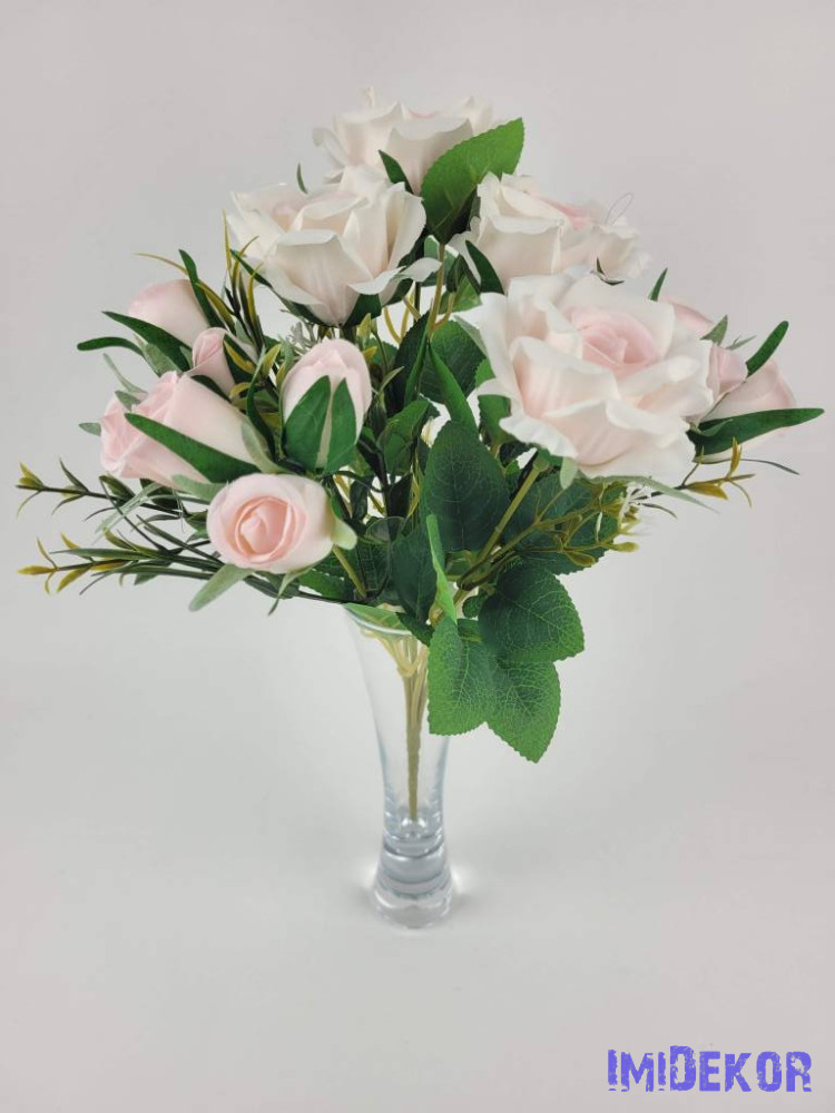 Rózsa + bimbó 7 ágú selyem csokor 31 cm - Babarózsaszín