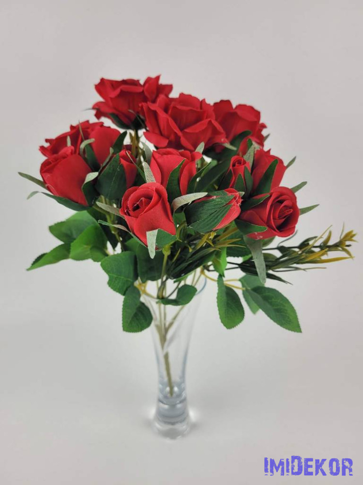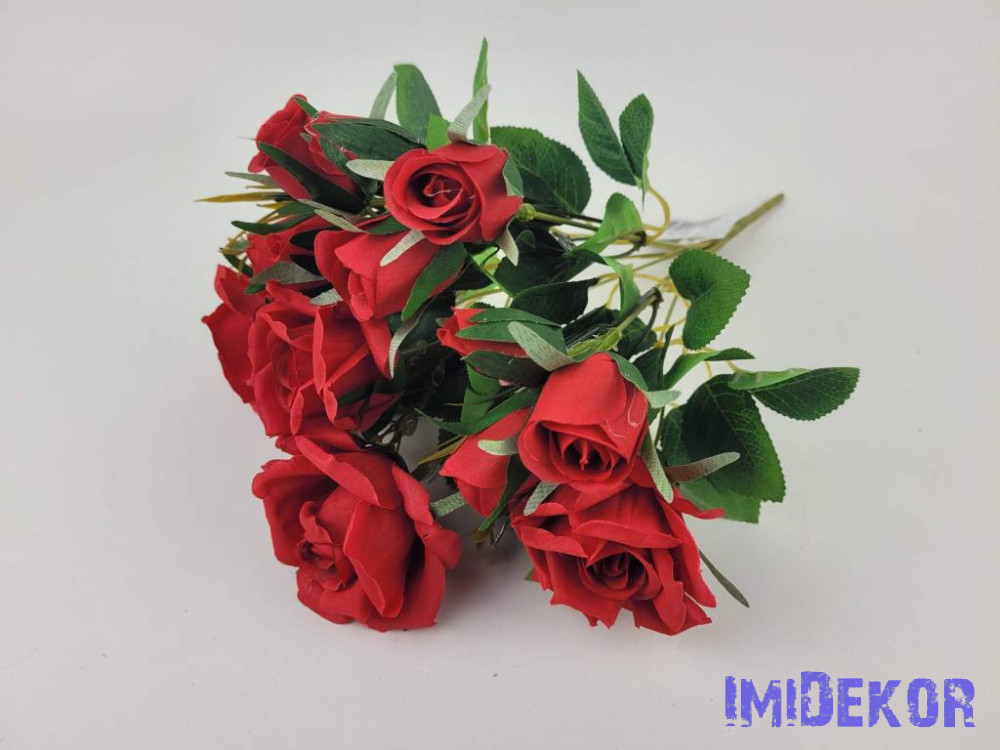 Rózsa + bimbó 7 ágú selyem csokor 31 cm - Piros