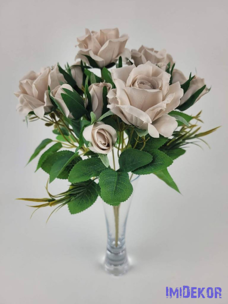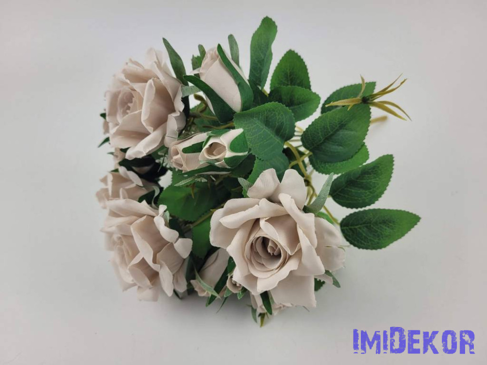 Rózsa + bimbó 7 ágú selyem csokor 31 cm - Púder