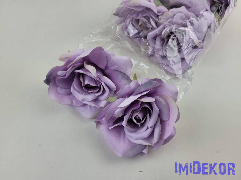 Rózsa selyemvirág fej nyílott 10 cm 911 - Világos Lilás