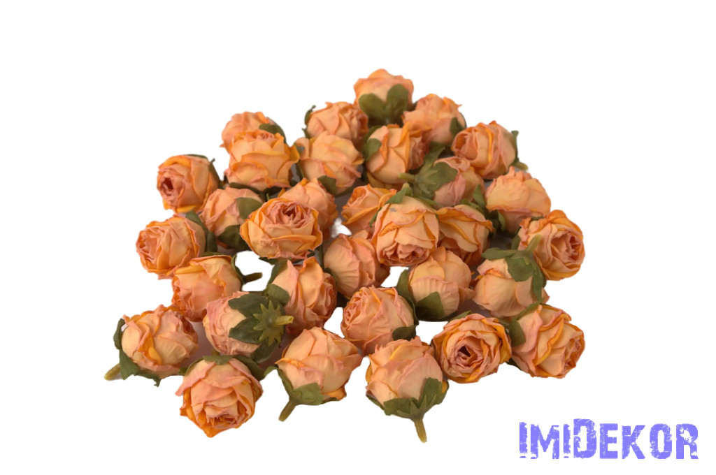 Rózsa szárazhatású selyem fej 3cm - Antik Narancs