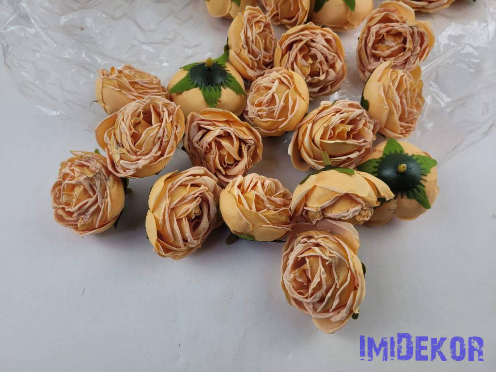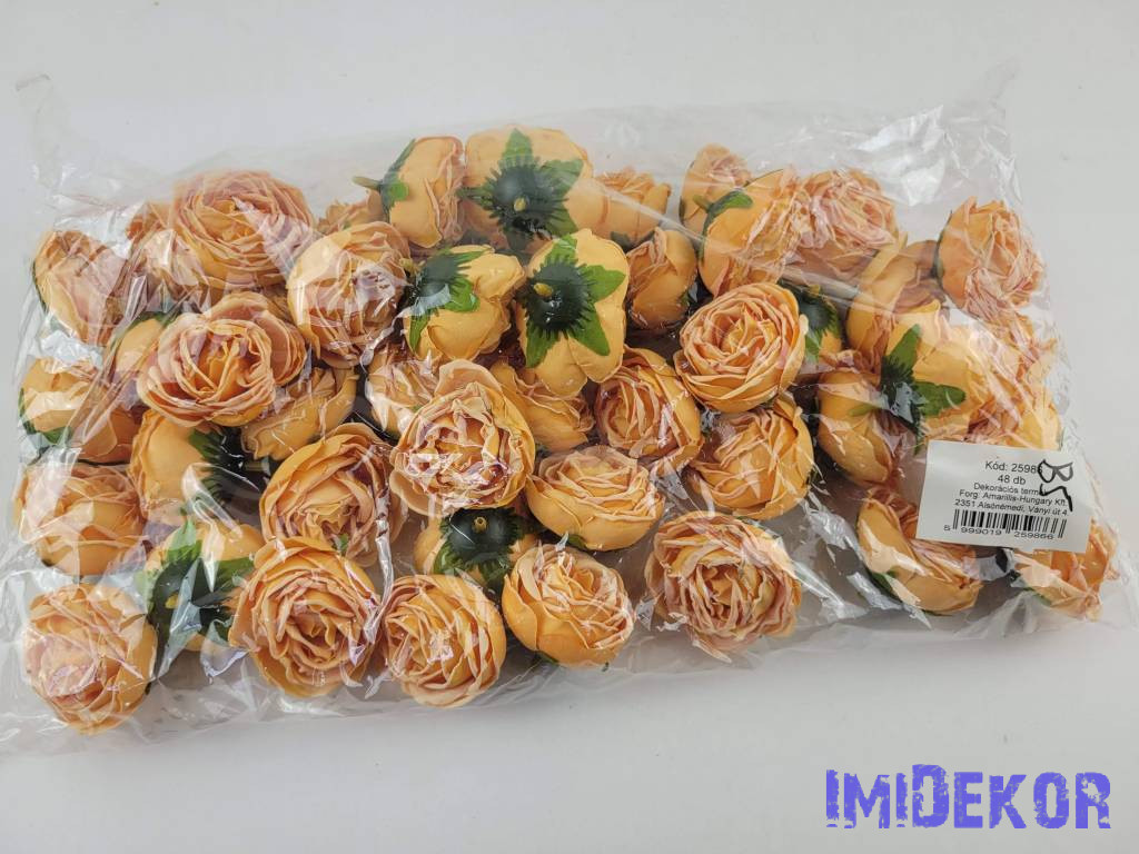 Rózsa szárazhatású selyem fej 4,5cm - Narancs