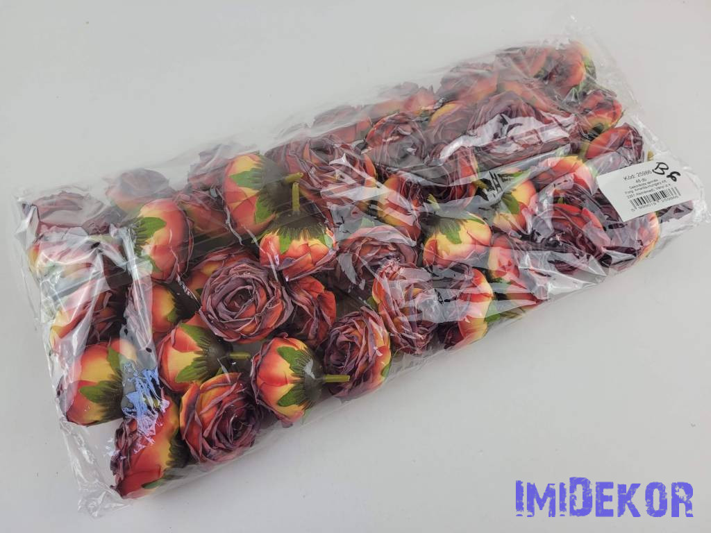 Rózsa szárazhatású selyem fej 4,5cm - Pirosas Narancs