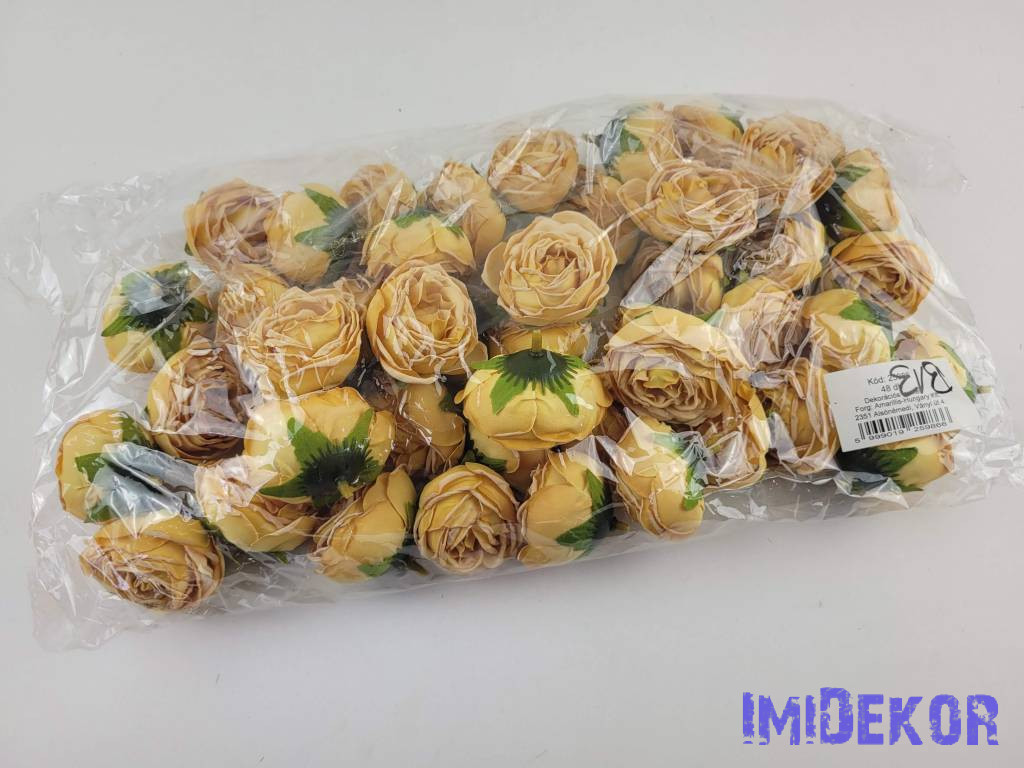 Rózsa szárazhatású selyem fej 4,5cm - Sárga