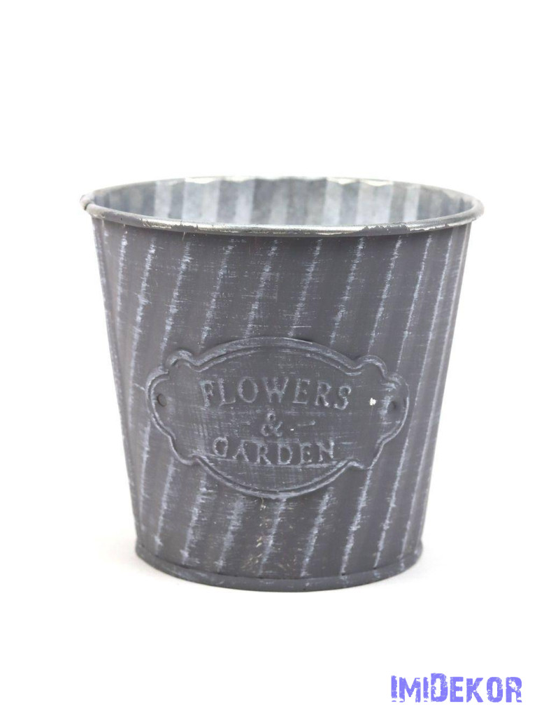 Rusztikus csíkos bádog kaspó 10cm - Szürke
