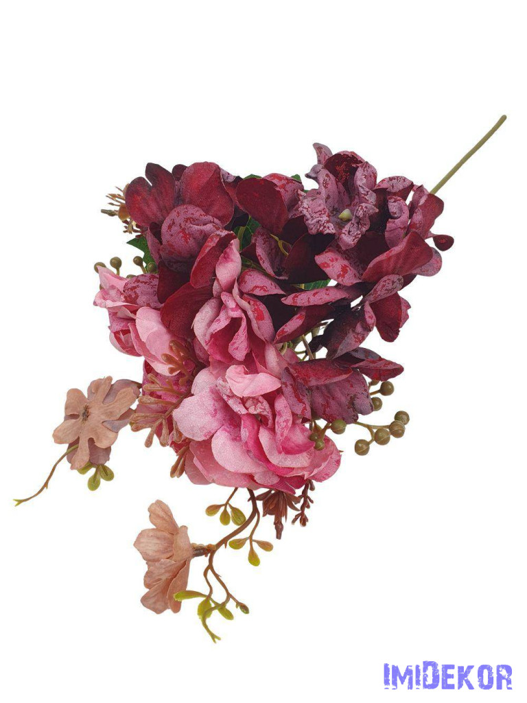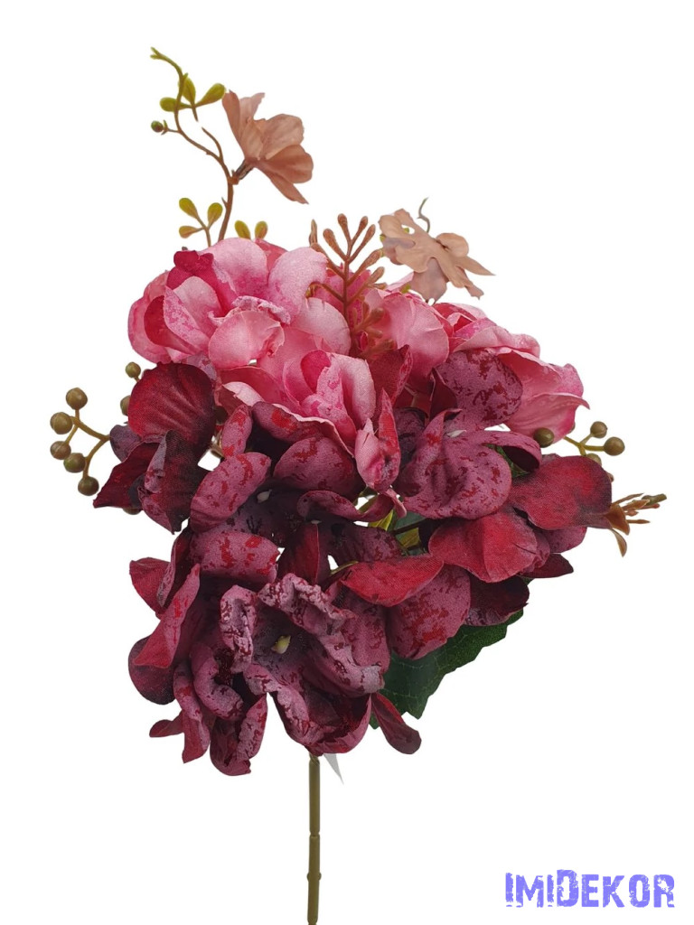 Szálas hortenzia kiegészítőkkel 35cm - Bordó