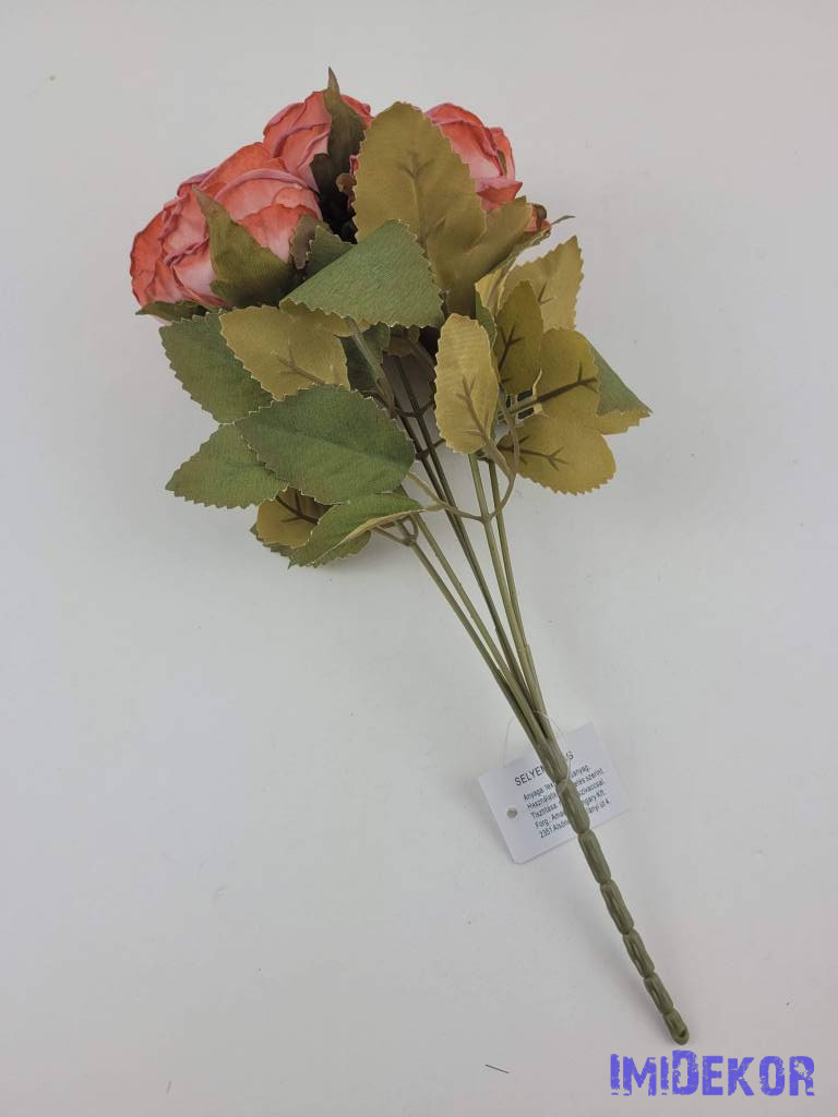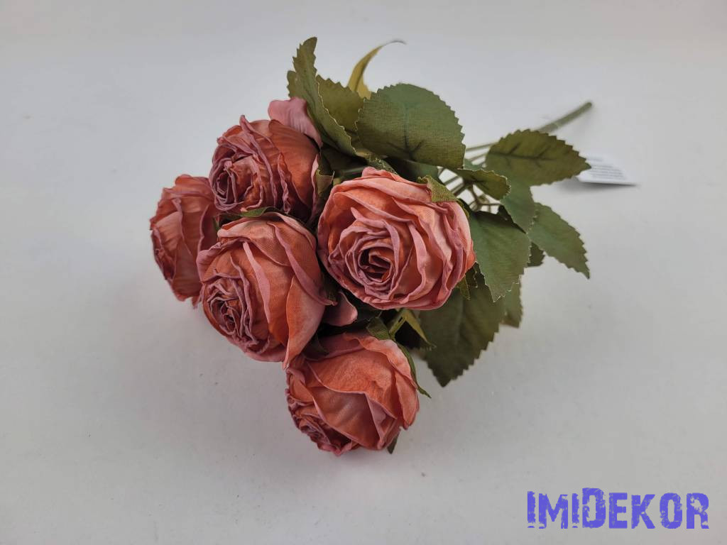 Szárazhatású gömbölyded 6 ágú rózsa csokor 30cm - Korall