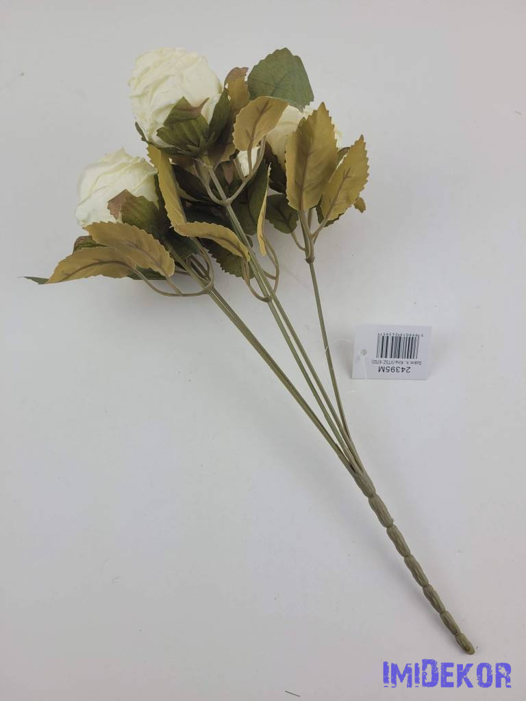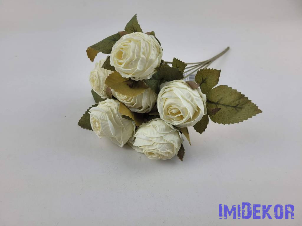 Szárazhatású gömbölyded 6 ágú rózsa csokor 30cm - Krém