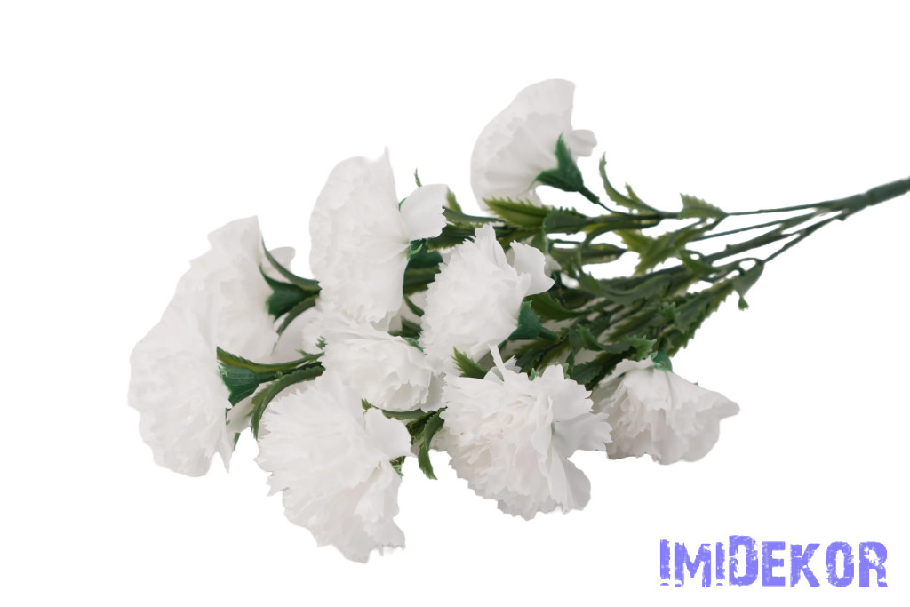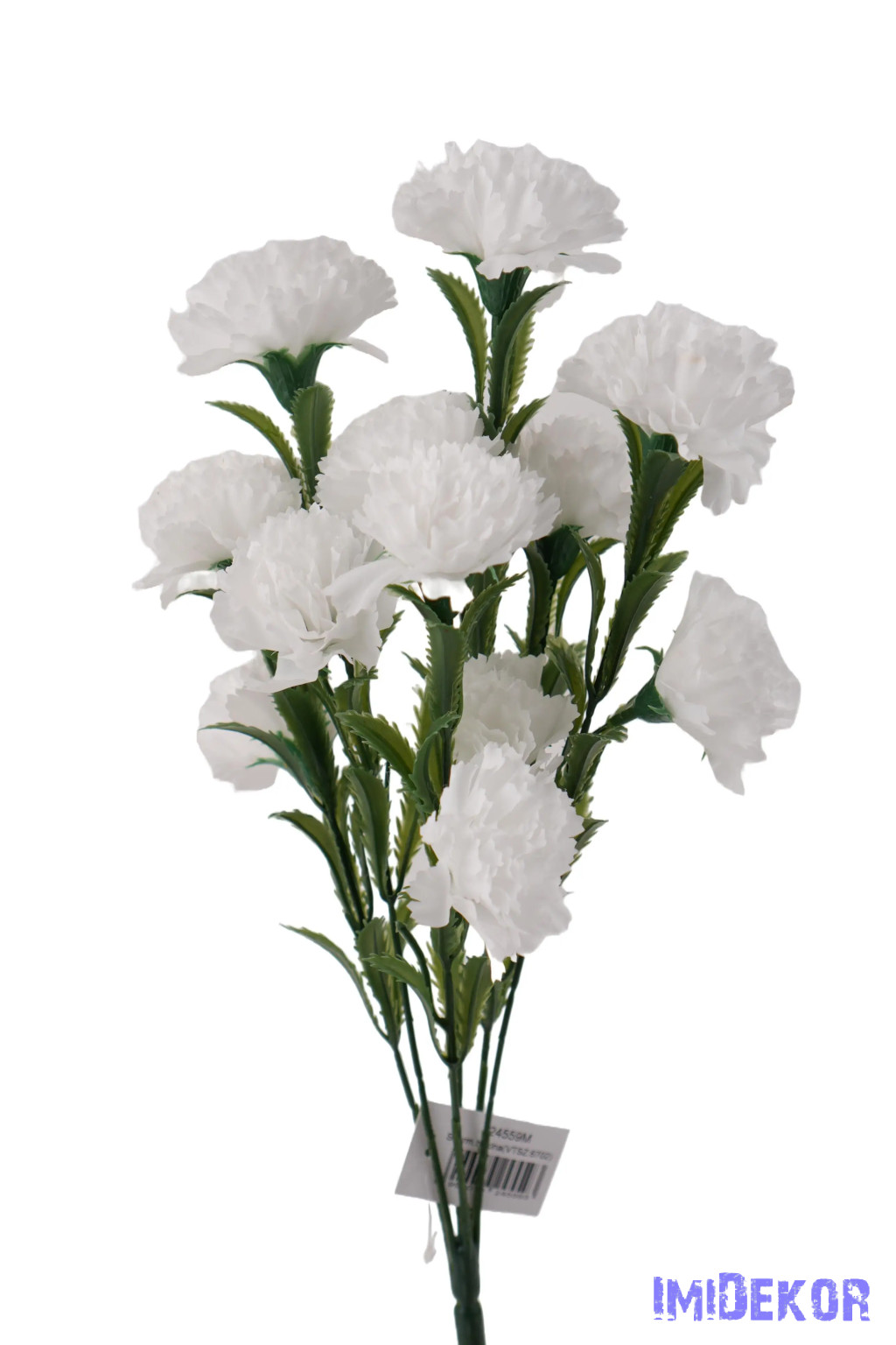 Szegfű 6 ágú 12 fejes selyemvirág csokor 46cm - Fehér