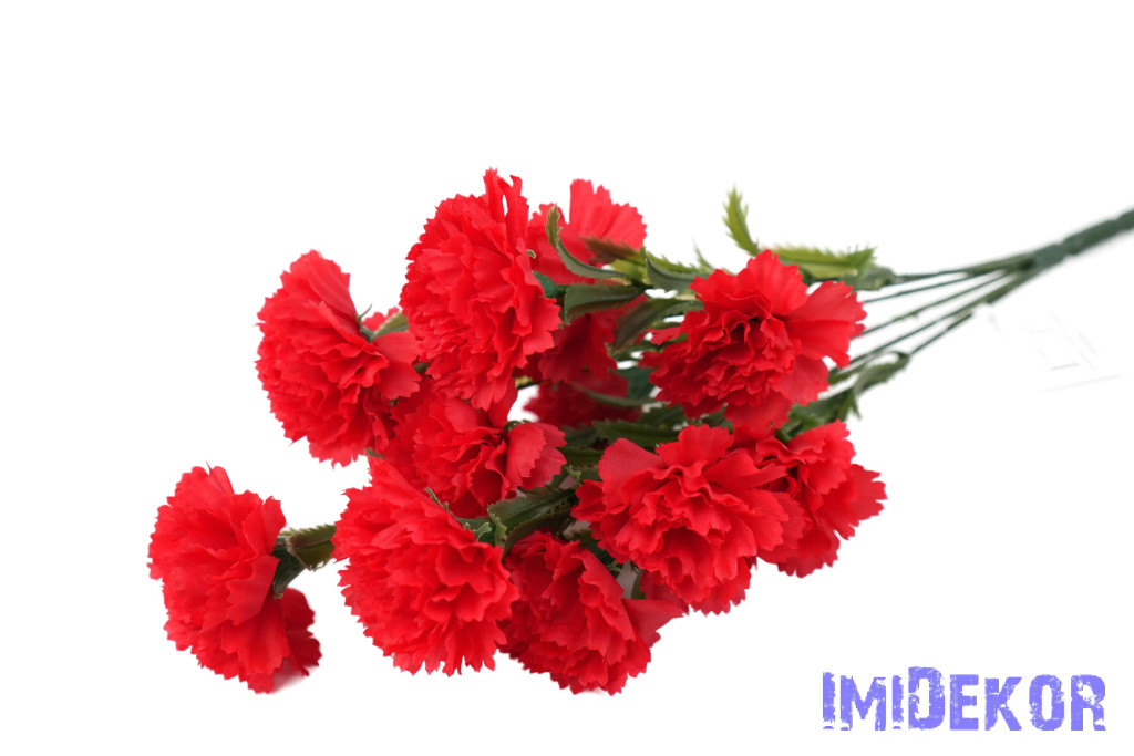 Szegfű 6 ágú 12 fejes selyemvirág csokor 46cm - Piros