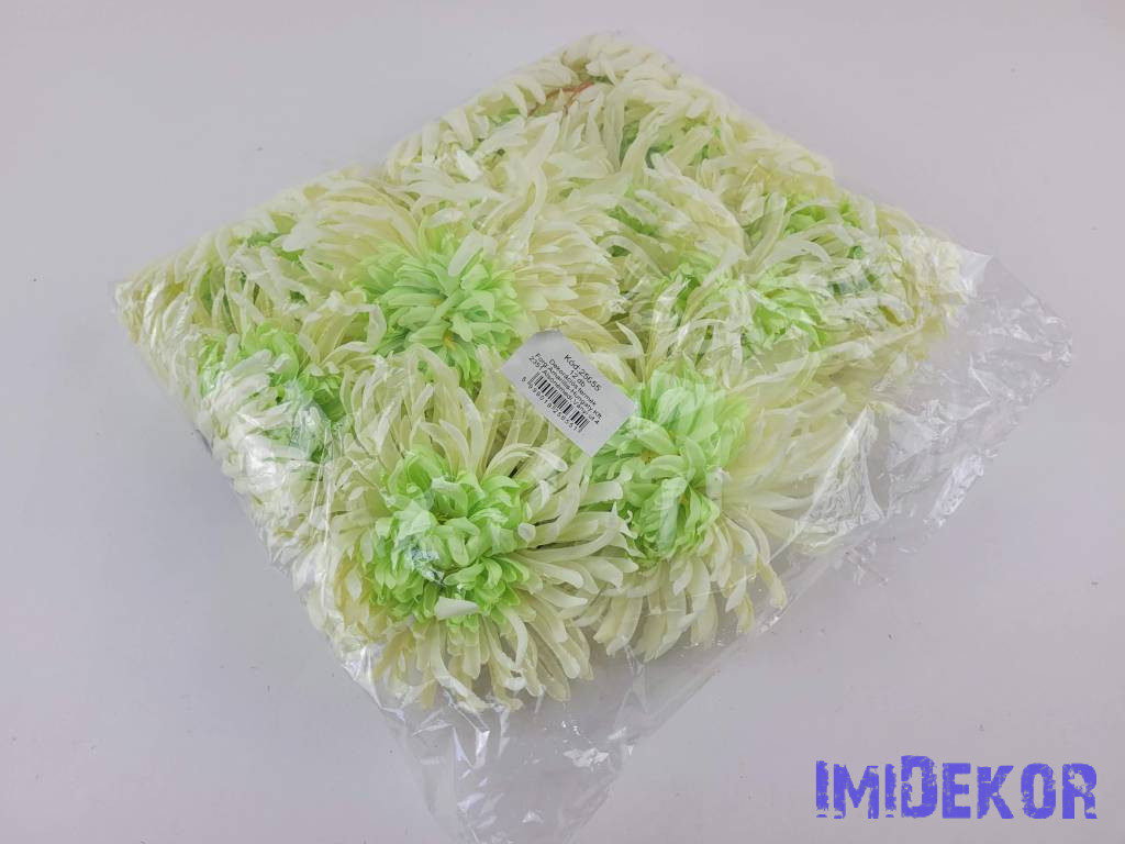 Tűszirmú krizantém fej 16cm - Krém-Zöld