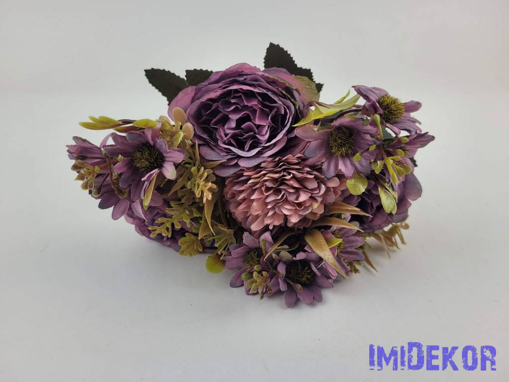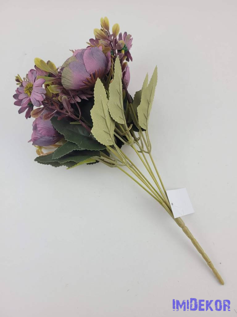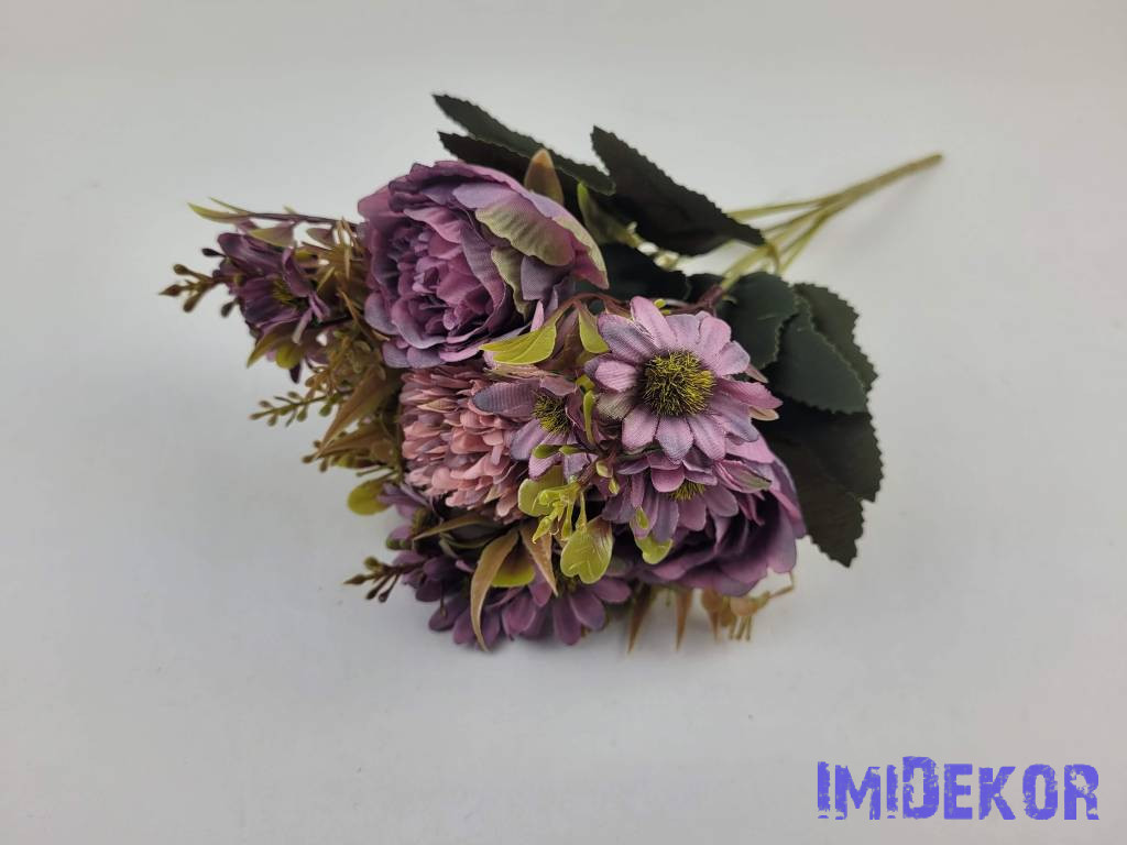 Krizantém-Boglárka 7 ágú selyemvirág csokor 32 cm - Lilás