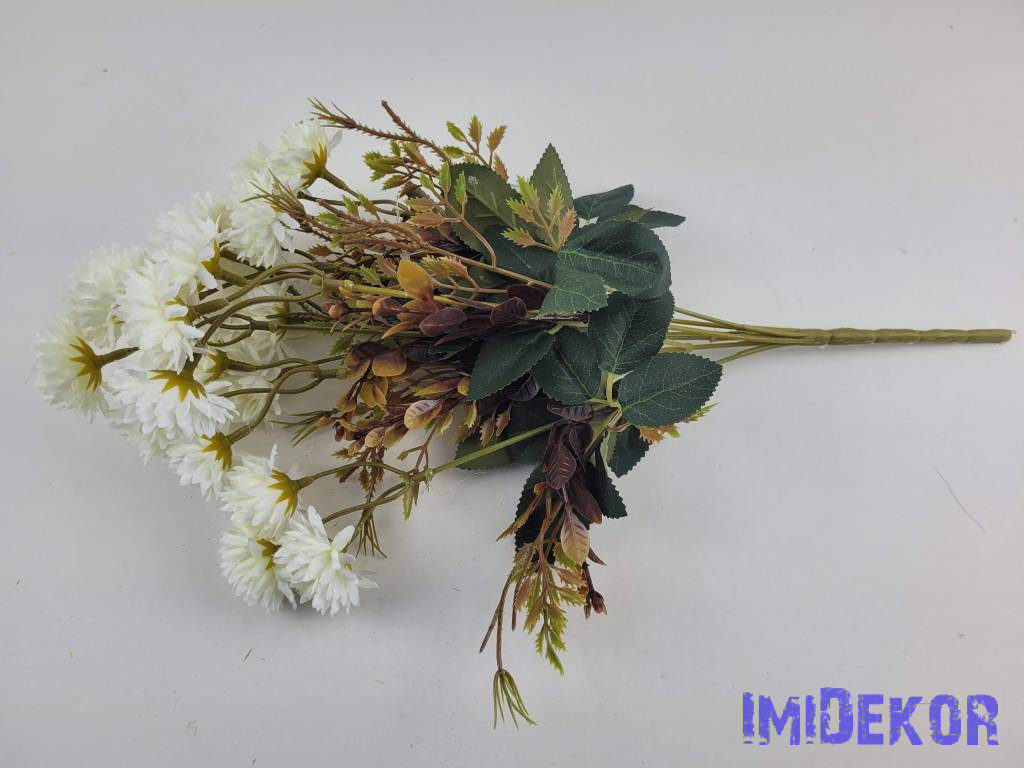 Krizantém mini fejes 7 ágú selyemvirág csokor 40cm - Krém