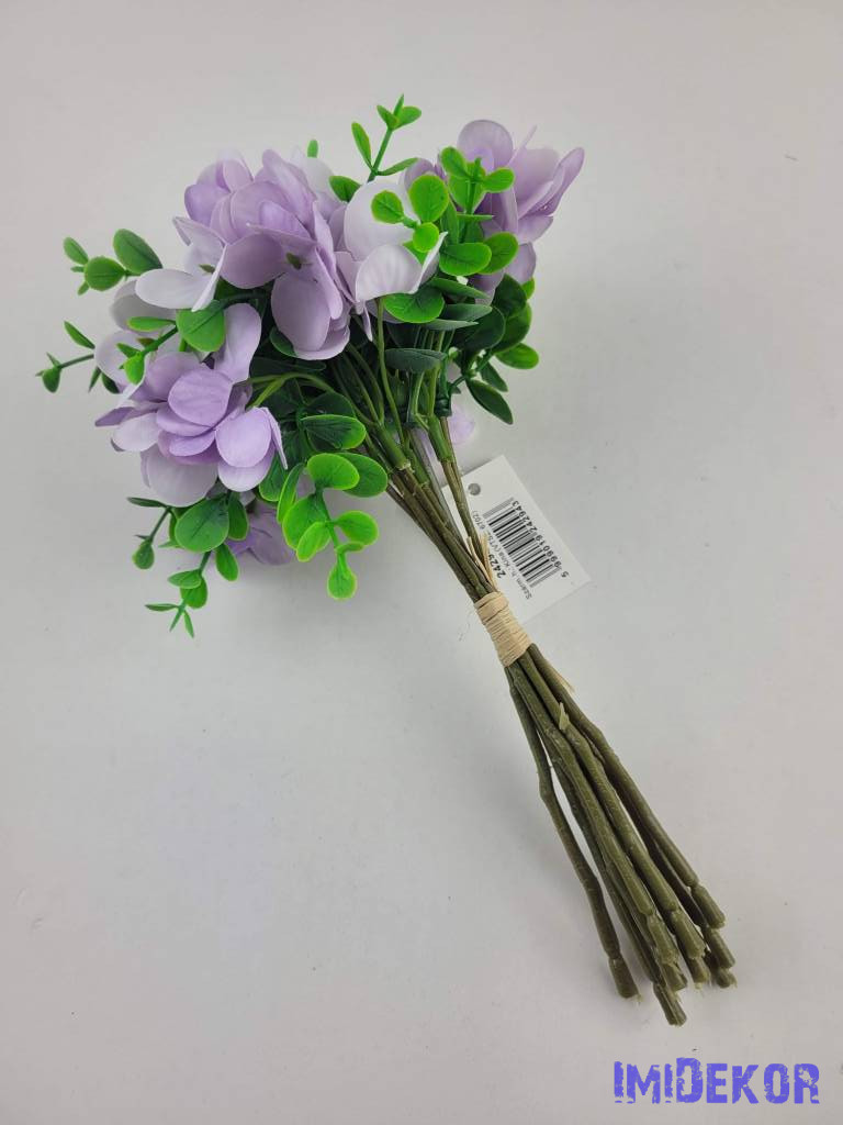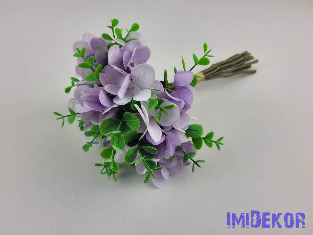 Hortenzia 10 ágú köteg mű eukaliptusszal 25cm - Halvány Lila