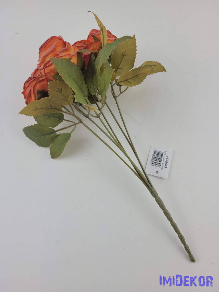 Szárazhatású gömbölyded 6 ágú rózsa csokor 30cm - Narancs