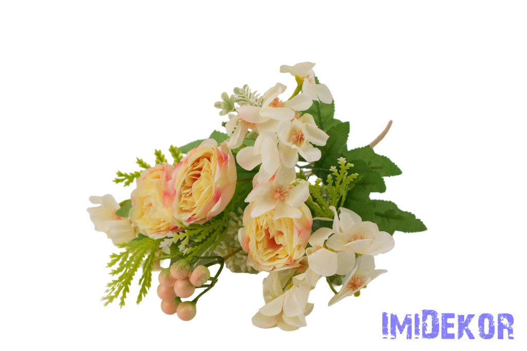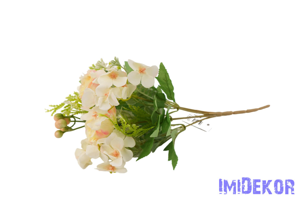 Peónia + hortenzia 7 ágú selyem csokor bogyóval 32cm - Krém-Pink
