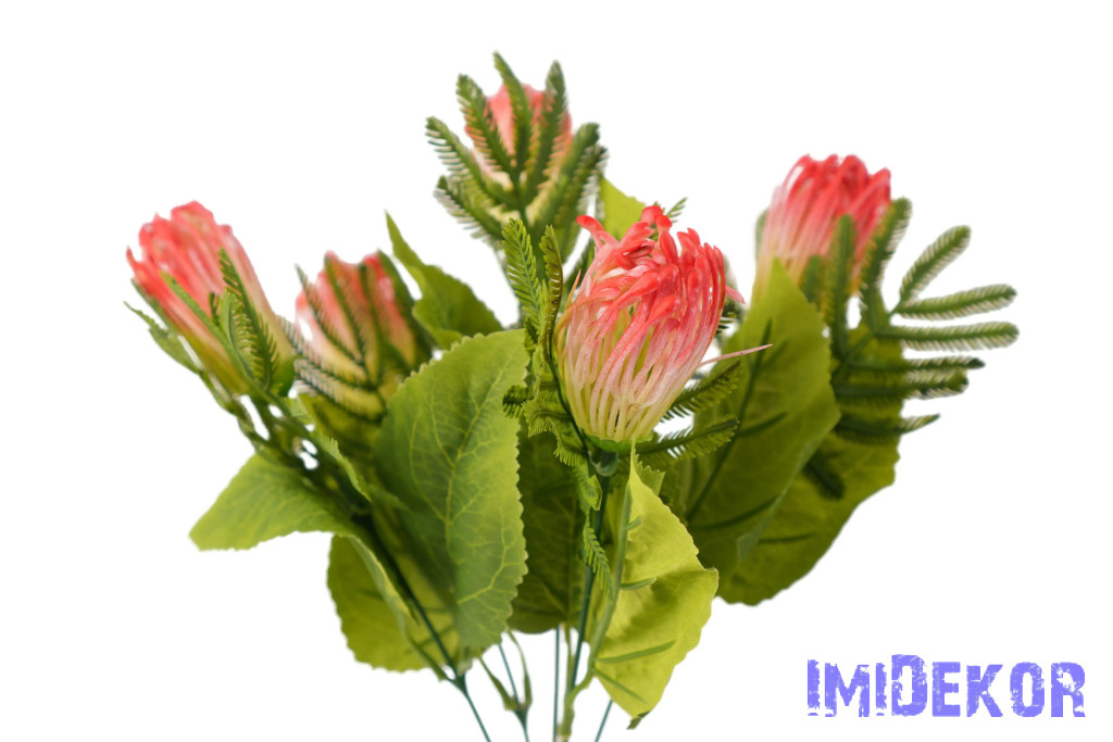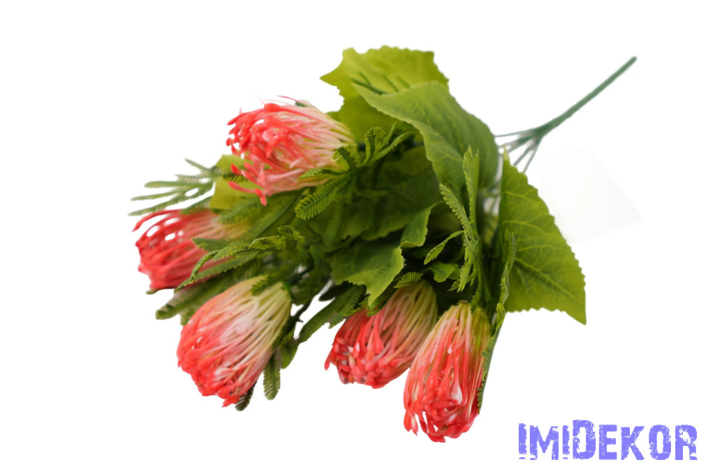 Korallféle műzöld selyem leveles 5 ágú bokor 34cm - Piros