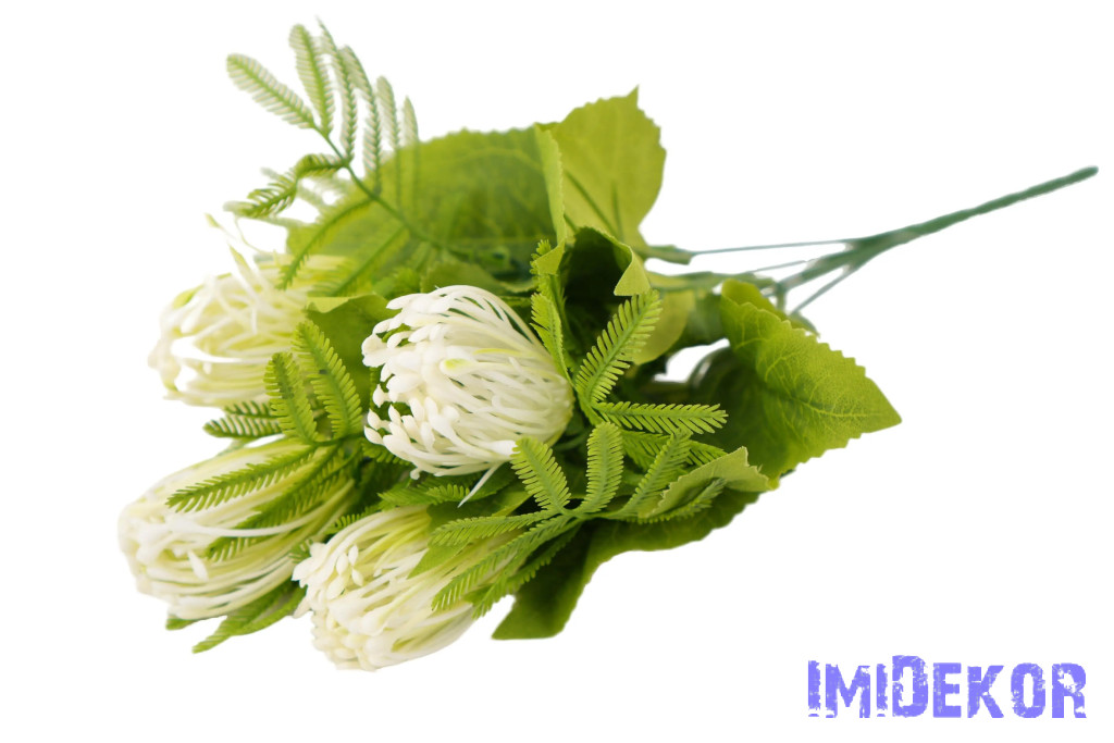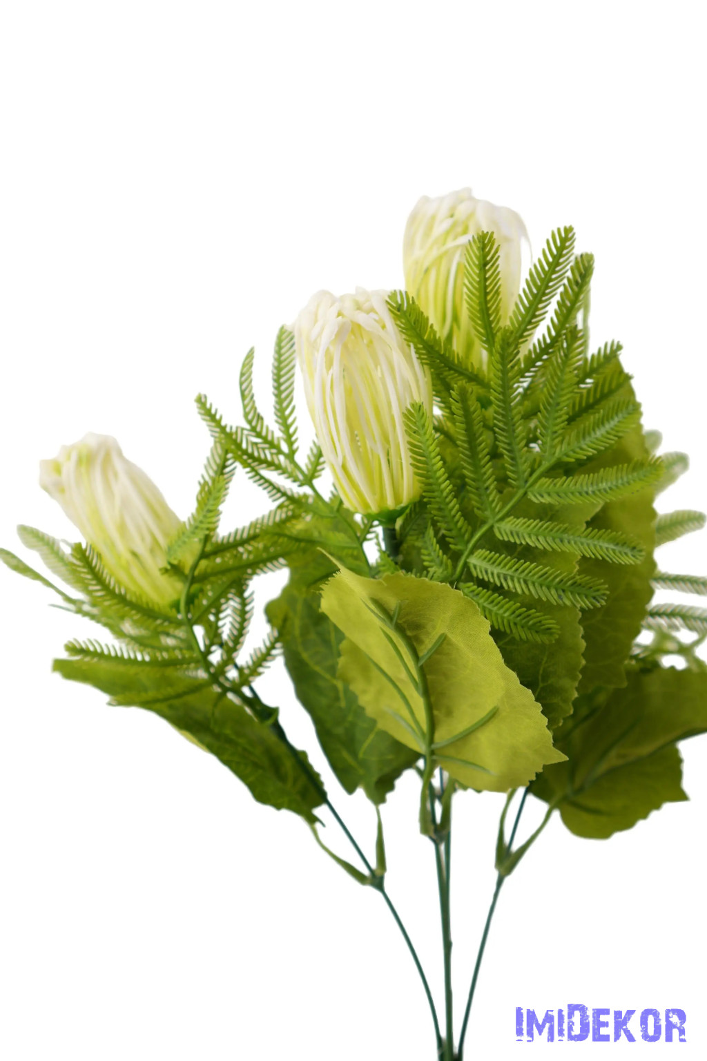Korallféle műzöld selyem leveles 5 ágú bokor 34cm - Fehér